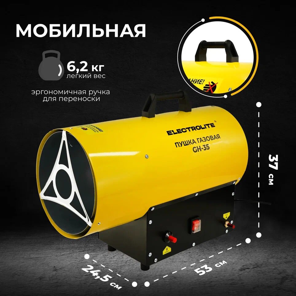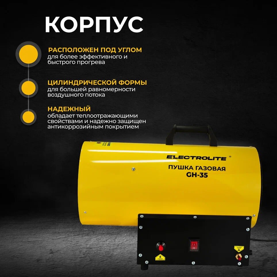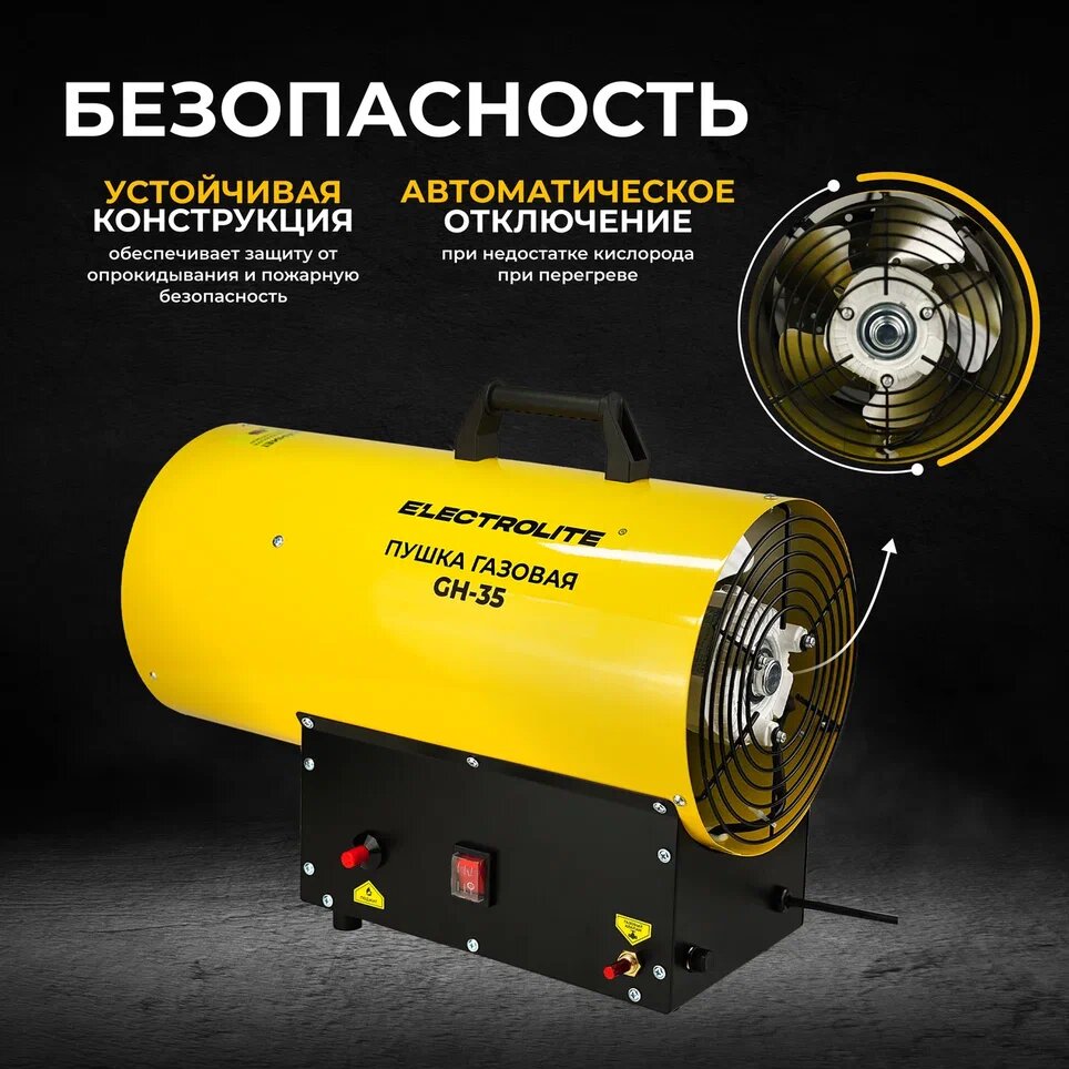 Пушка тепловая газовая / обогреватель ELECTROLITE GH-35 (35 кВт , 900 м3, пропан/бутан, пъезоподжиг) интересное: