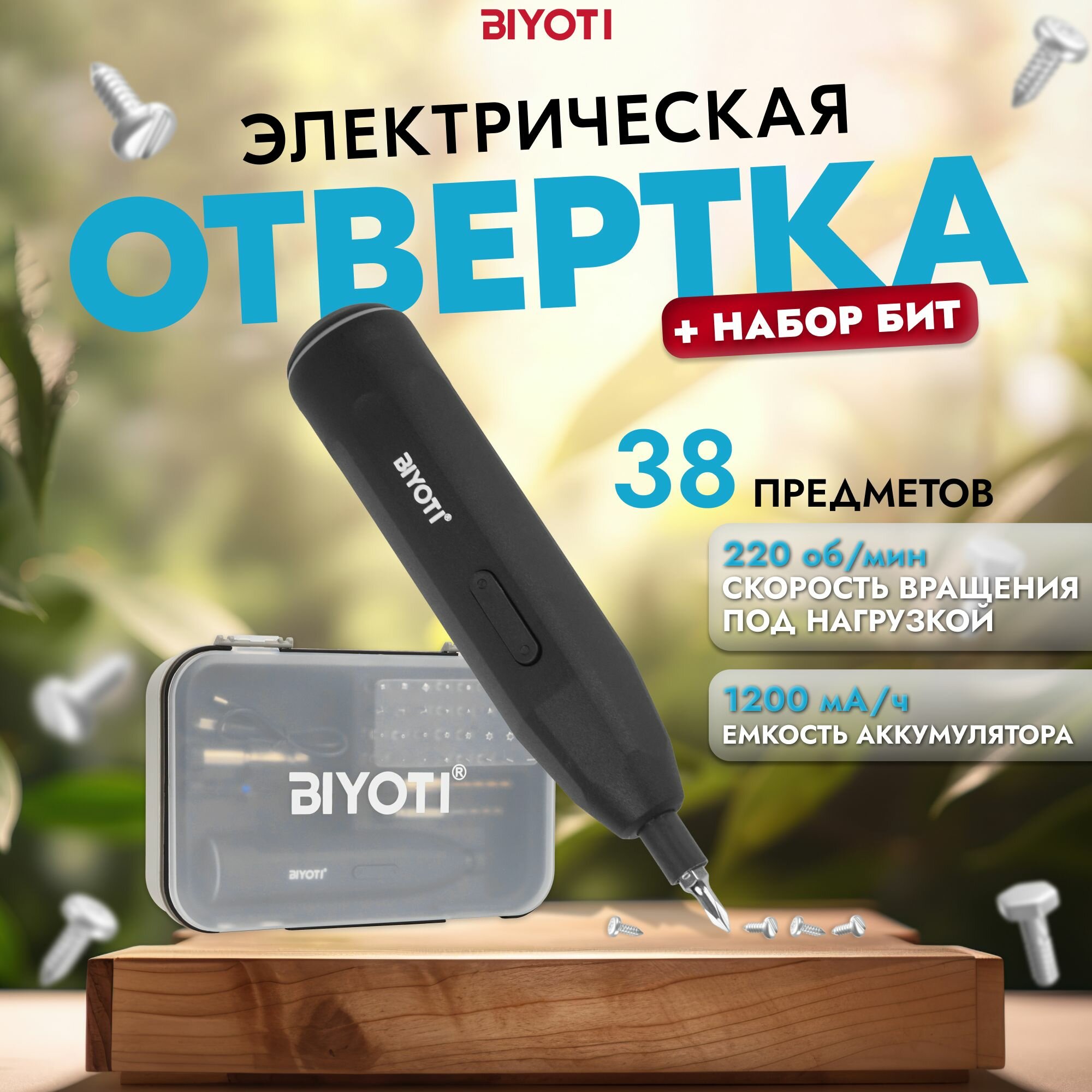 | Комплектация | Аккумуляторная отвертка 3,6В с набором бит и удлинителем (35 предметов), зарядка USB, кейс |