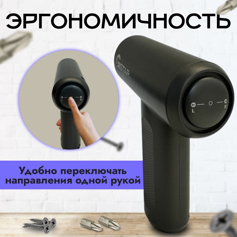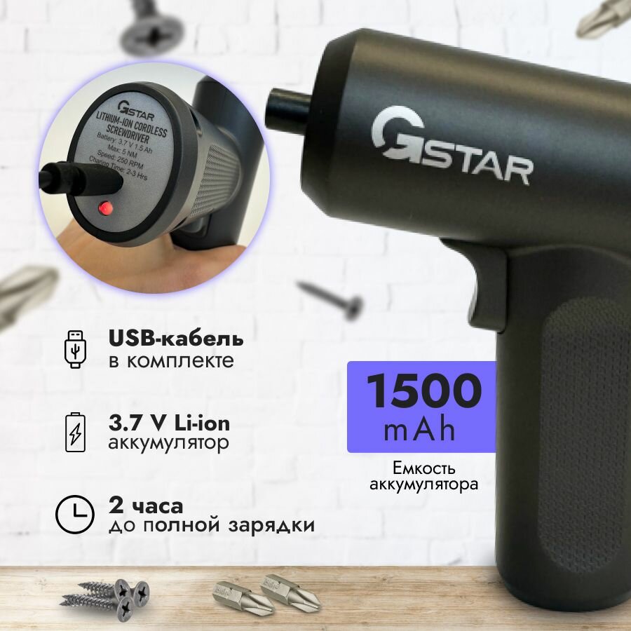 Отвёртка электрическая беспроводная аккумуляторная серая GStar интересное:
