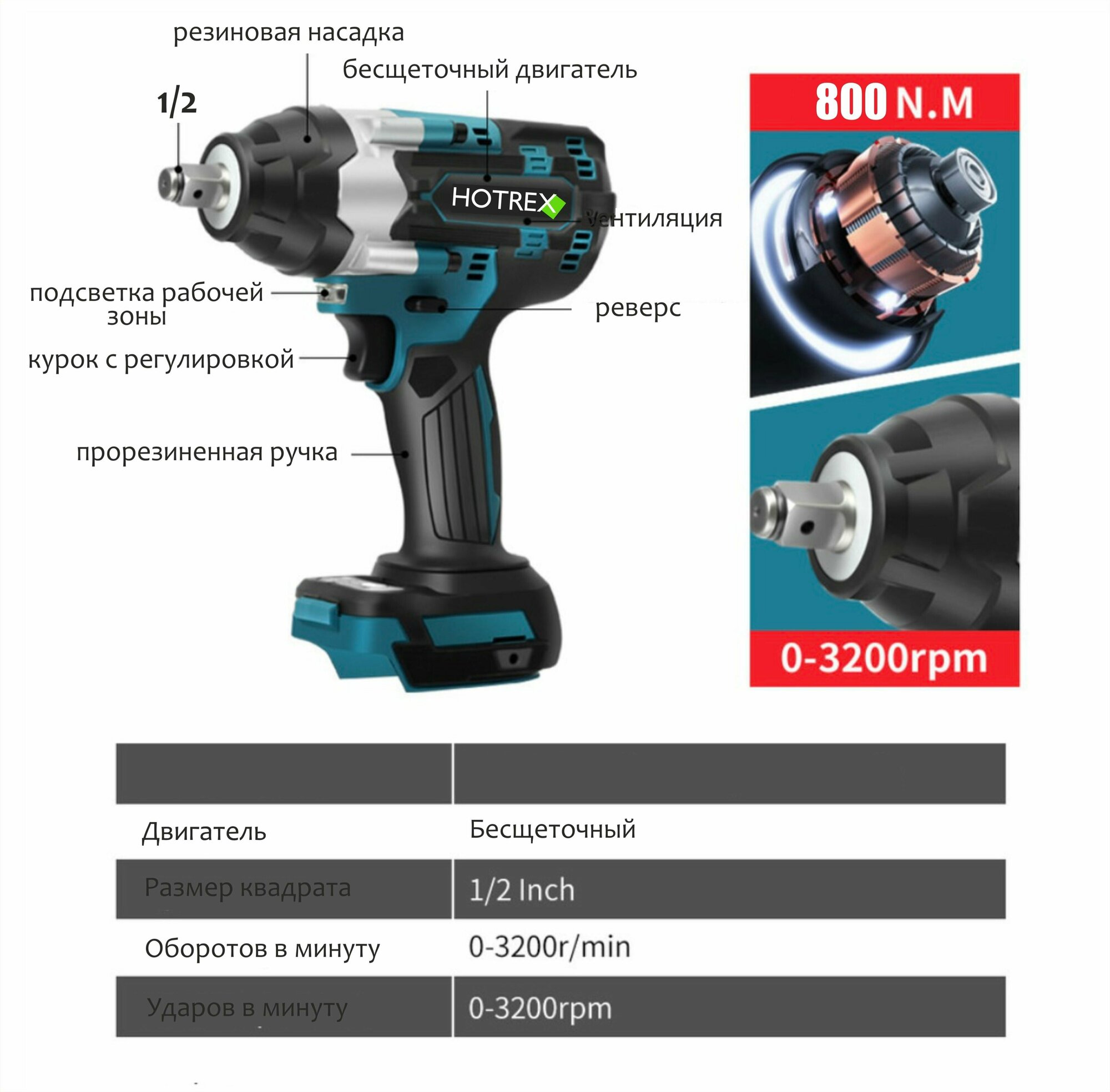 Гайковерт аккумуляторный 800 HM 1/2 бесщеточный (тушка, без АКБ в комплекте) интересное:
