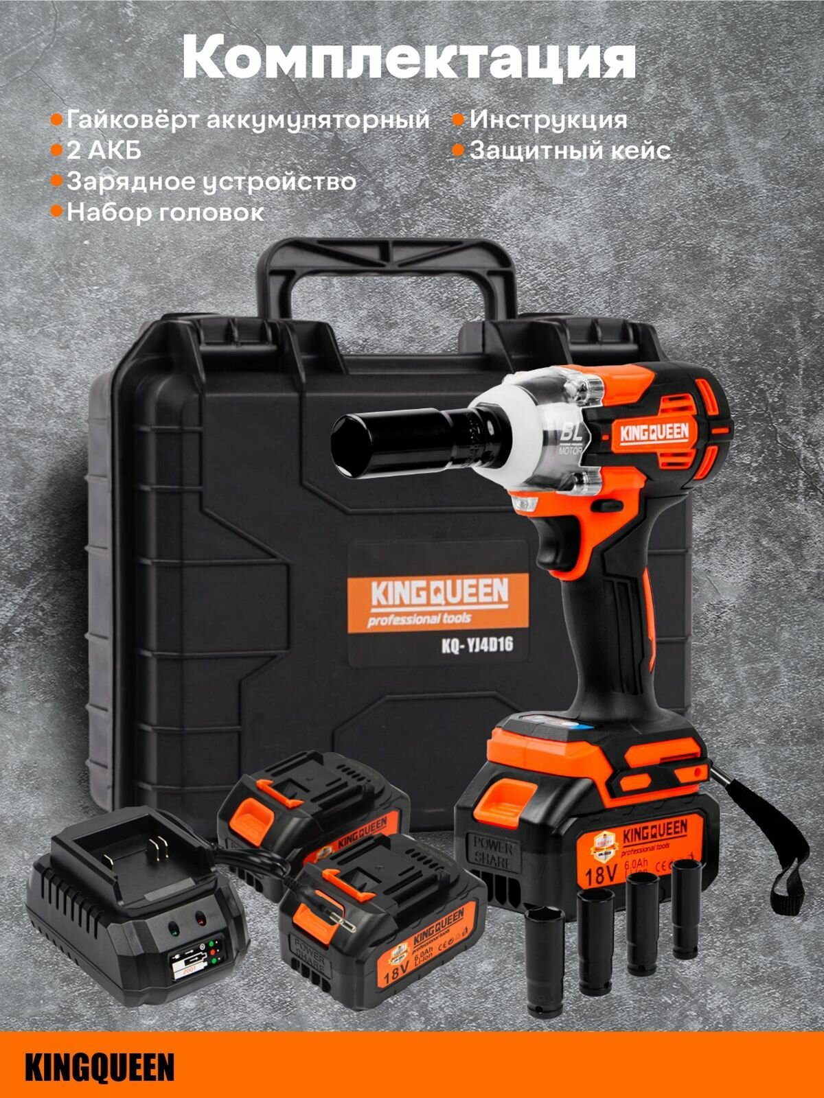 Гайковерт аккумуляторный ударный с набором оснастки 18В, 320 Нм Винтоверт АКБ KINGQUEEN интересное:
