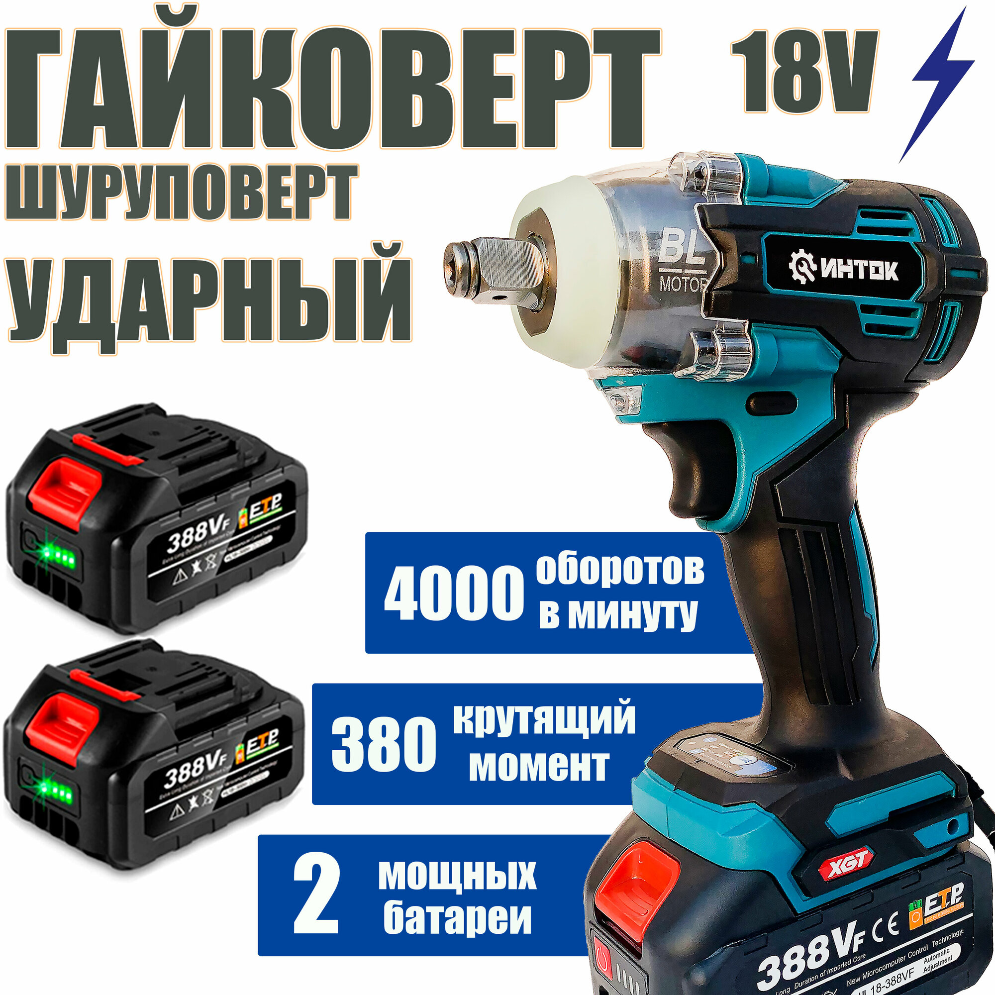 Гайковерт-шуруповерт ударный ИНТOК 380 Hm c АКБ-2шт 20V 4.0 Ah MAXLITHIUM и ЗУ, адаптирован к АКБ Маkitа LXT