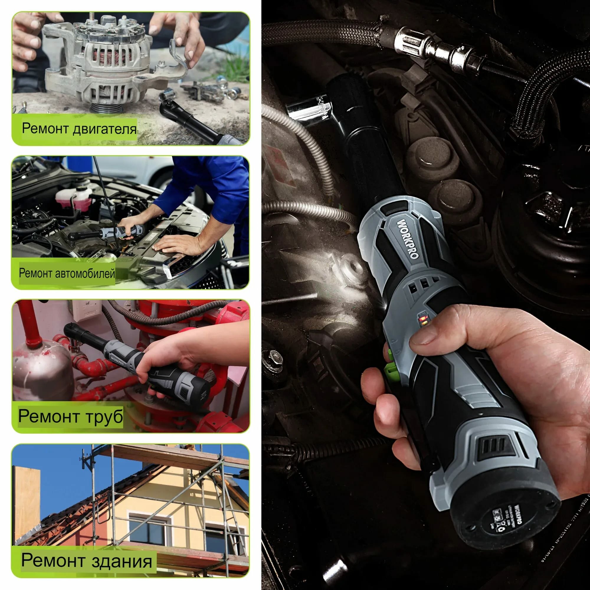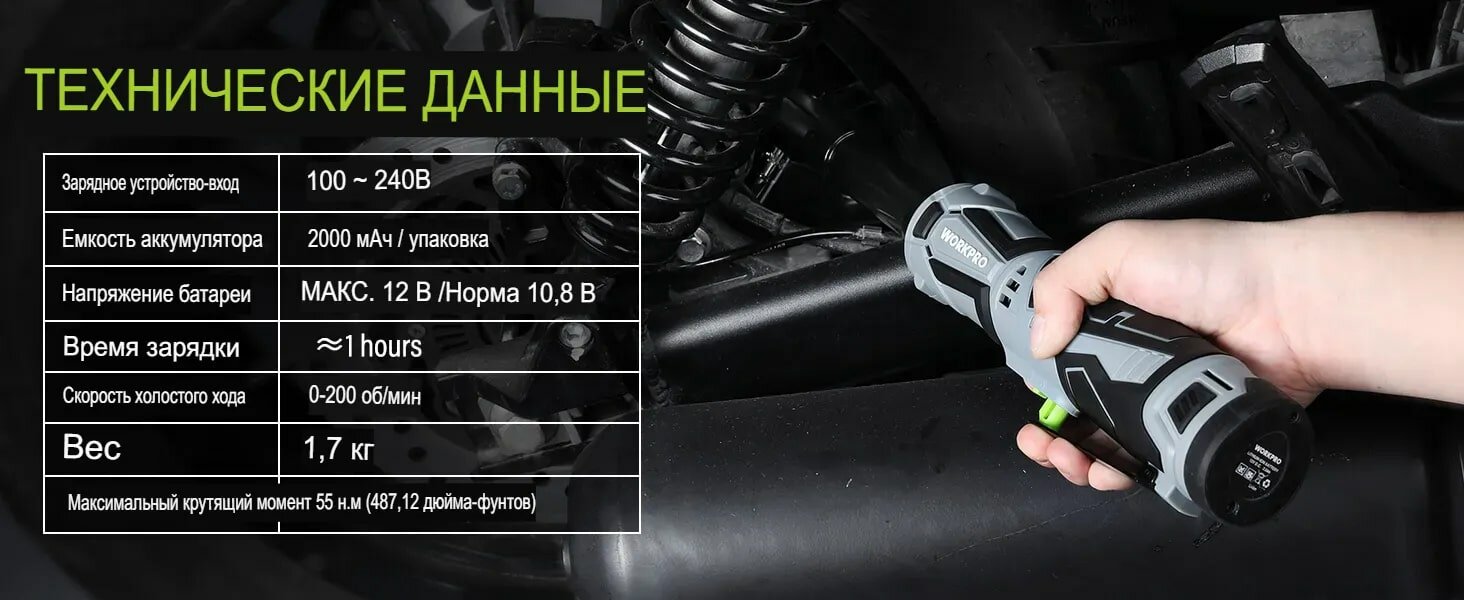 Аккумуляторный угловой гайковерт Workpro с удлиненной головкой, с двумя аккумуляторами 12В, 2Ач, с храповым механизмом интересное: