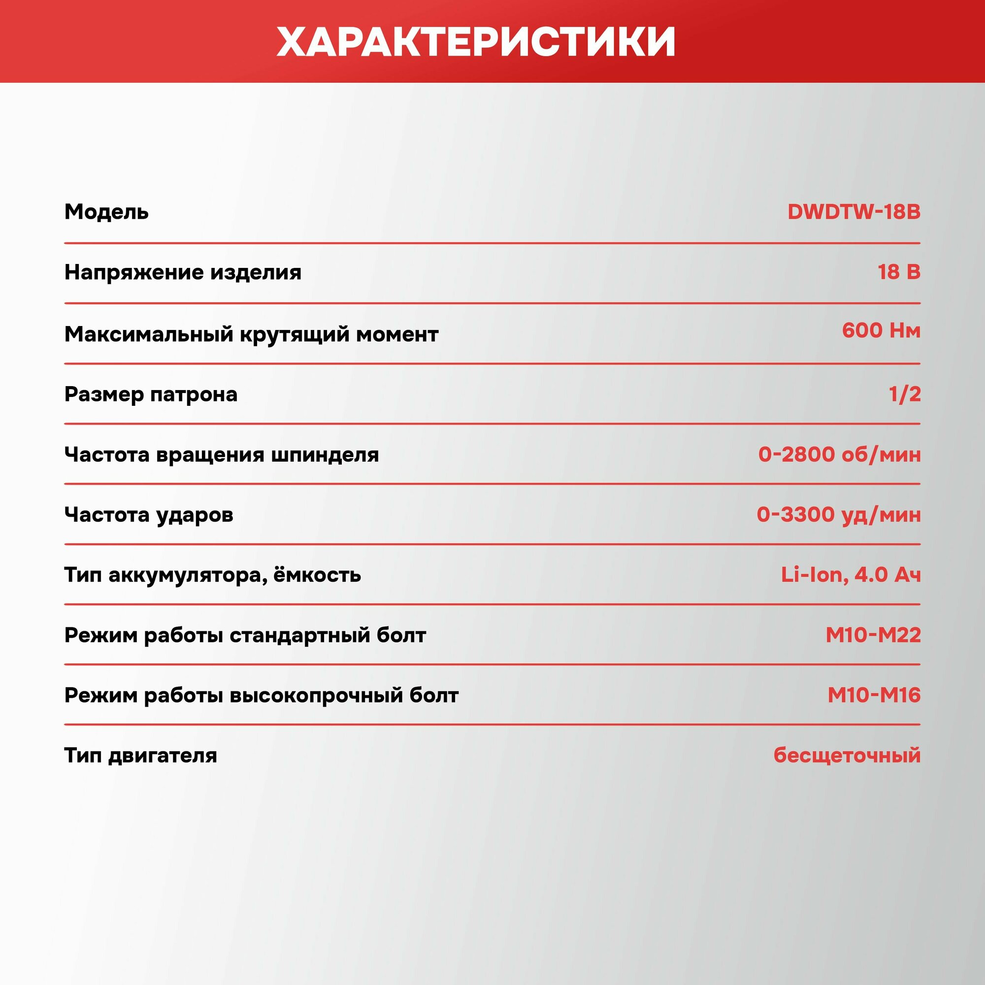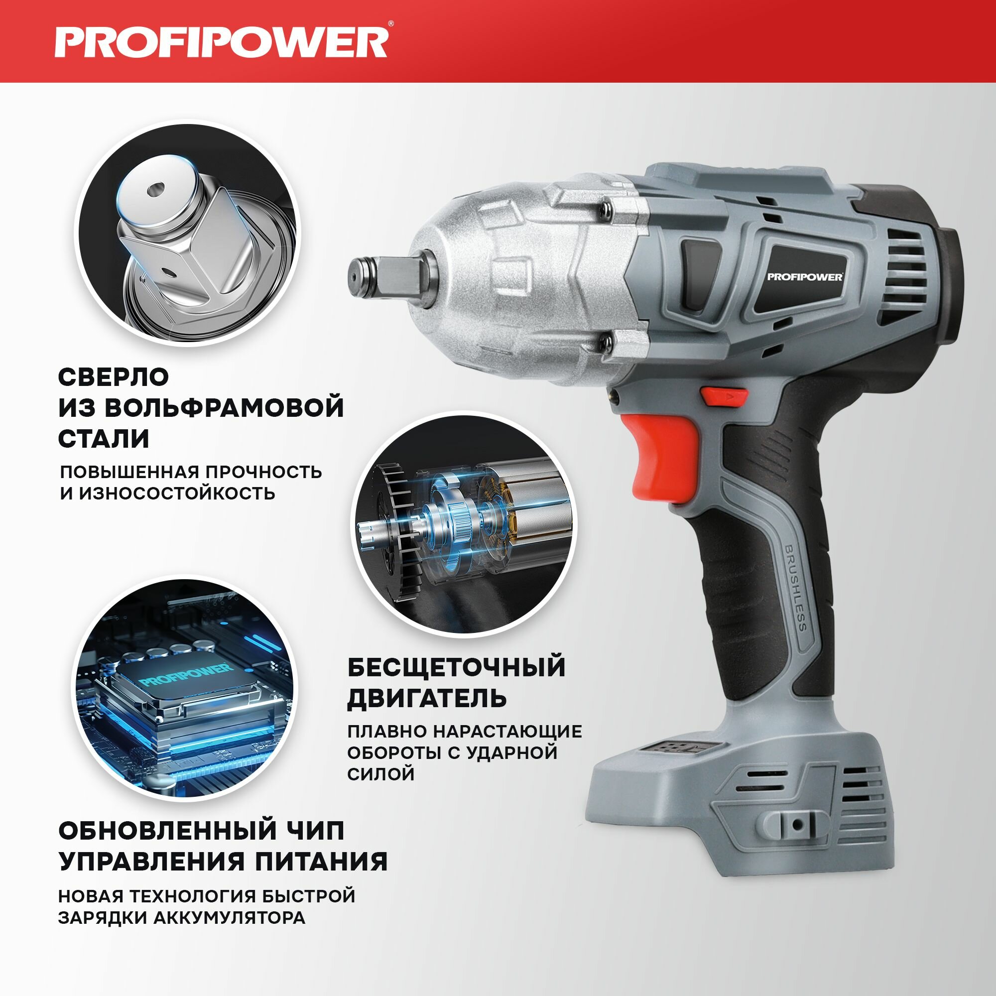 Аккумуляторный гайковерт бесщеточный ударный ProfiPower DWDTW-18V (без акб, 600Нм, набор головок 17/19/21мм, в коробке) интересное: