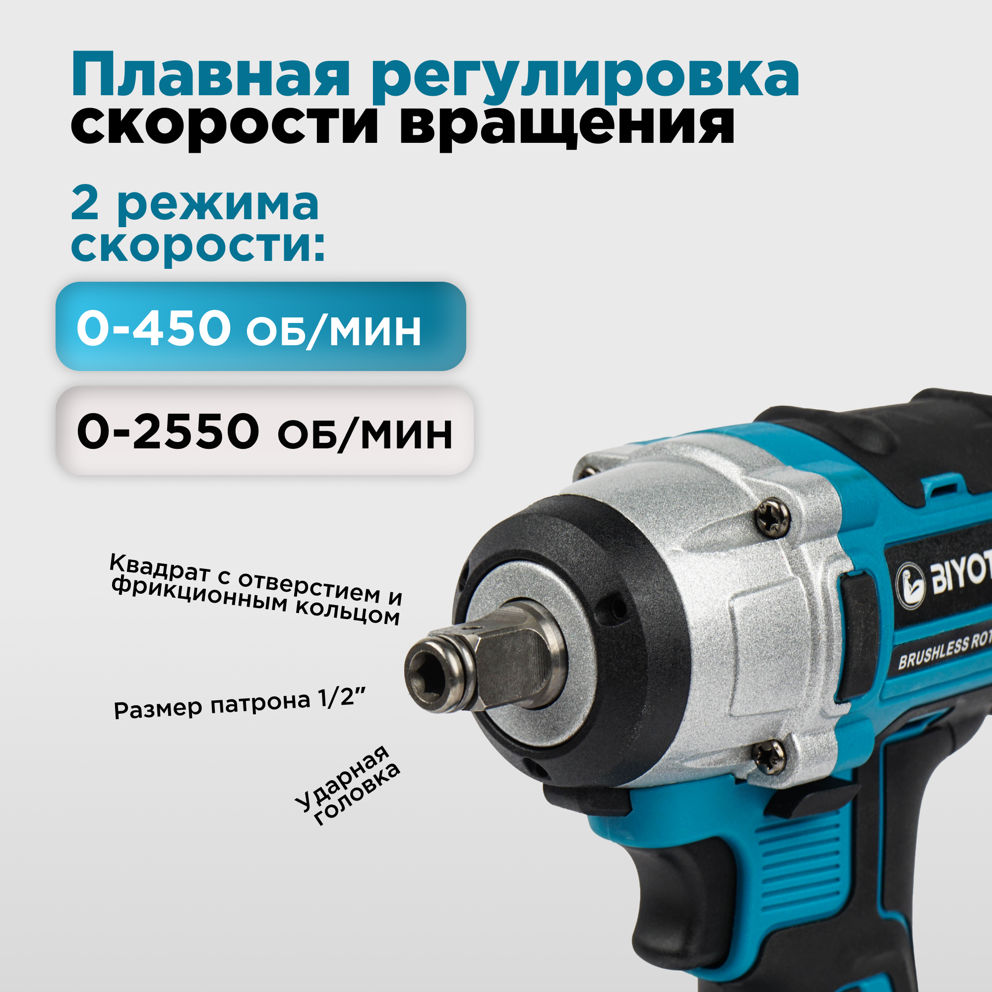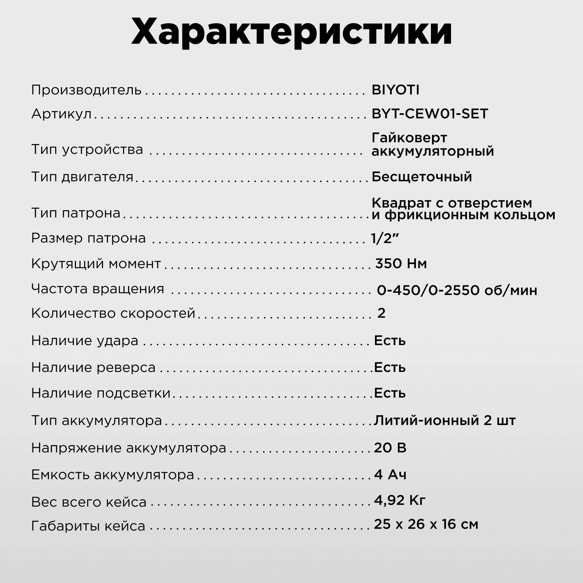 Гайковерт аккумуляторный ударный бесщеточный с набором оснастки 18В, 350 Нм, BIYOTI / Винтоверт интересное: