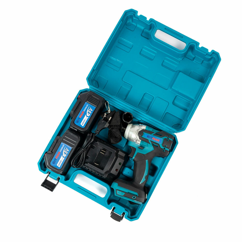 | Комплектация | Гайковерт 2 аккумулятора; Зарядное устройство; Ударная головка и адаптер биты Кейс. |