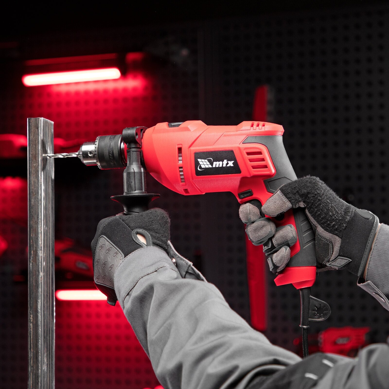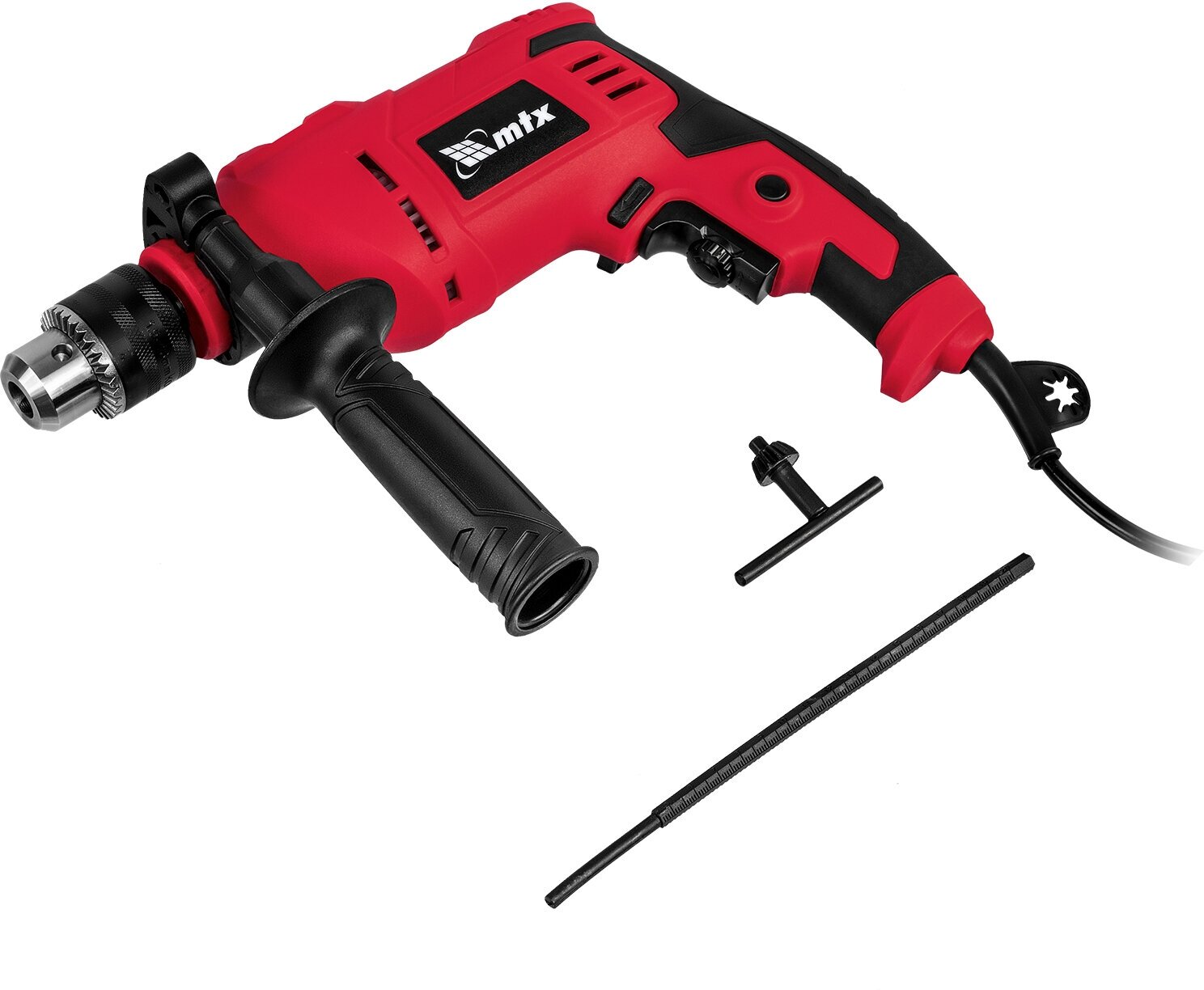 Ударная дрель MTX - универсальный инструмент для ручного сверления различных материалов, уданрого сверления кирпичной кладки и легкого бетона. Поворотный переключатель исключает самопроизвольное переключение режимов. Обрезиненная рукоятка обеспечивает комфорт и безопасность в работе.
