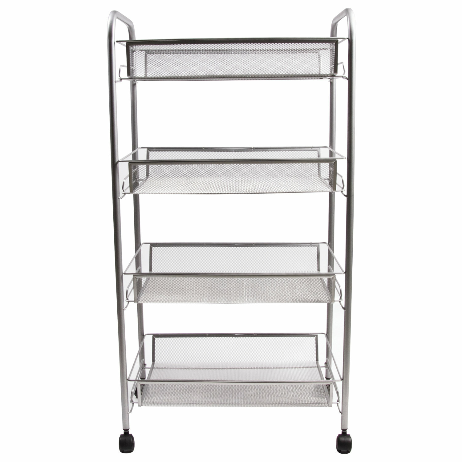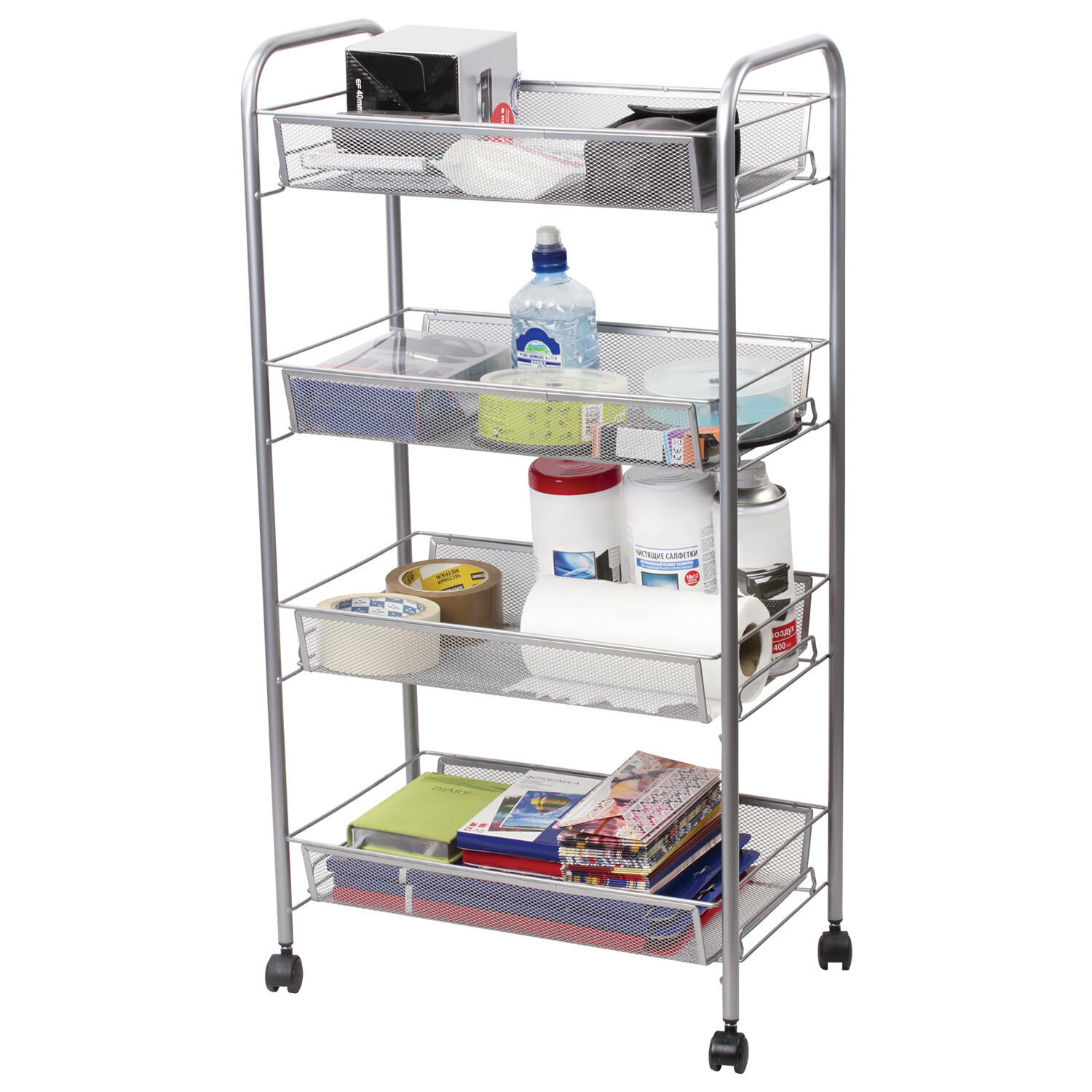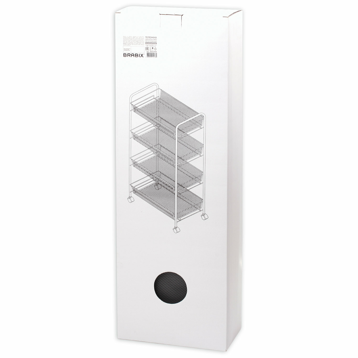 Купить Этажерка (тележка) BRABIX офисно-бытовая 4 яруса, на колесах, металл, серебристая, 43,5х26х83,5 см, 603754