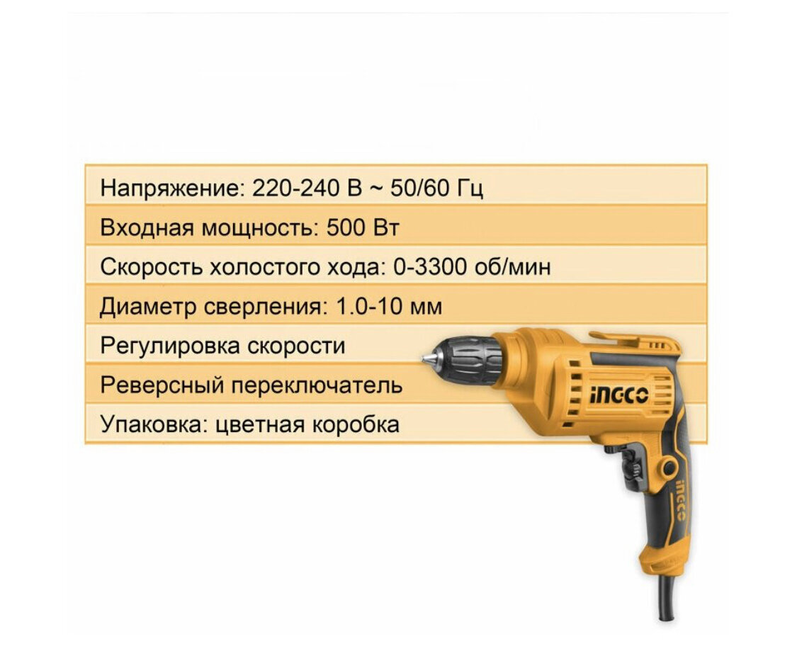 Электрическая дрель INGCO ED500282 INDUSTRIAL 500 Вт 1-10 мм интересное: