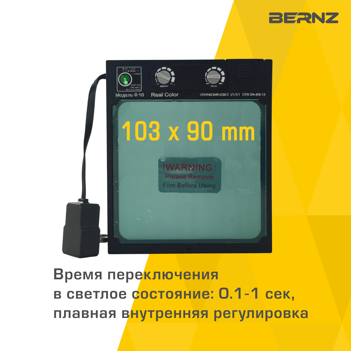 Маска сварщика BERNZ Ф10 ProVISION чёрная, Хамелеон 103х90 мм, DIN 3/4-8/9-13, внешняя регулировка, красная в коробке интересное: