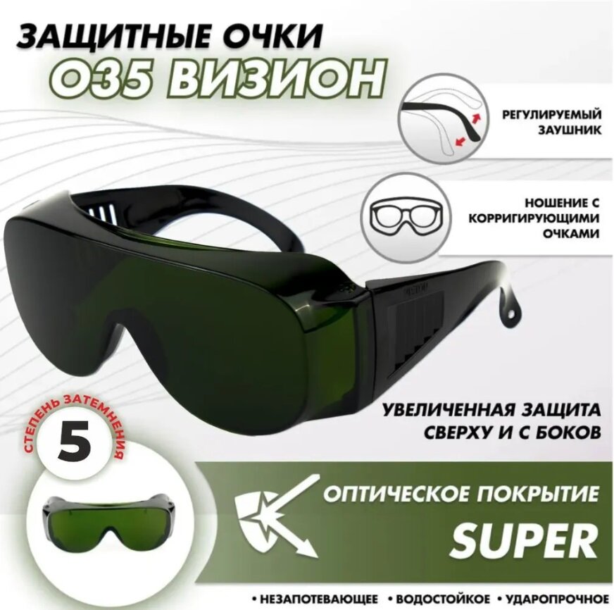 Очки защитные РОСОМЗ О35 визион зеленые, сварочные (5PC), арт. 13556 (можно носить с очками для зрения)