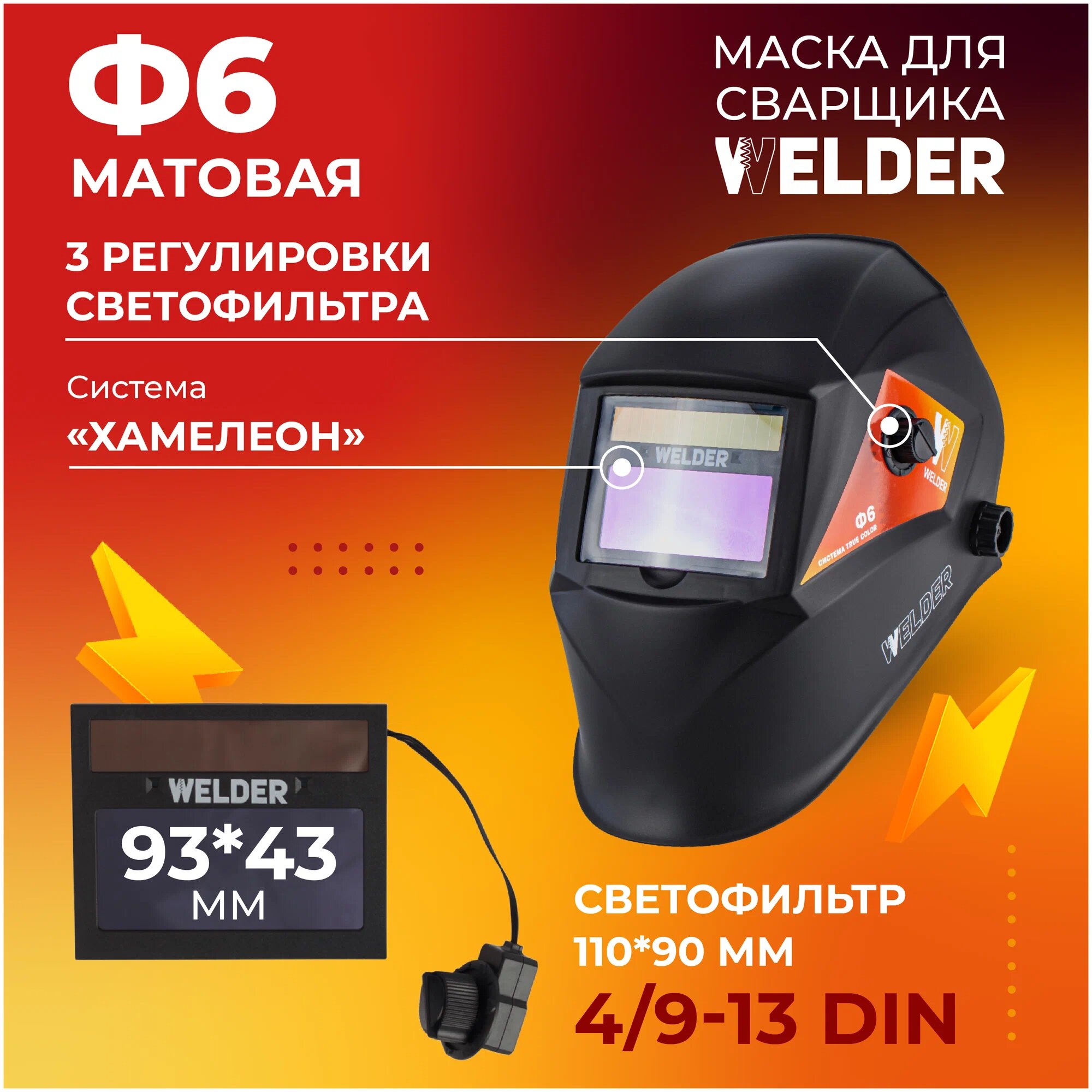 Маска сварочная WELDER PRO Ф6 REAL COLOR Хамелеон 93x43 мм, DIN 4/9-13 (Внешняя регулировка), матовая, в коробке