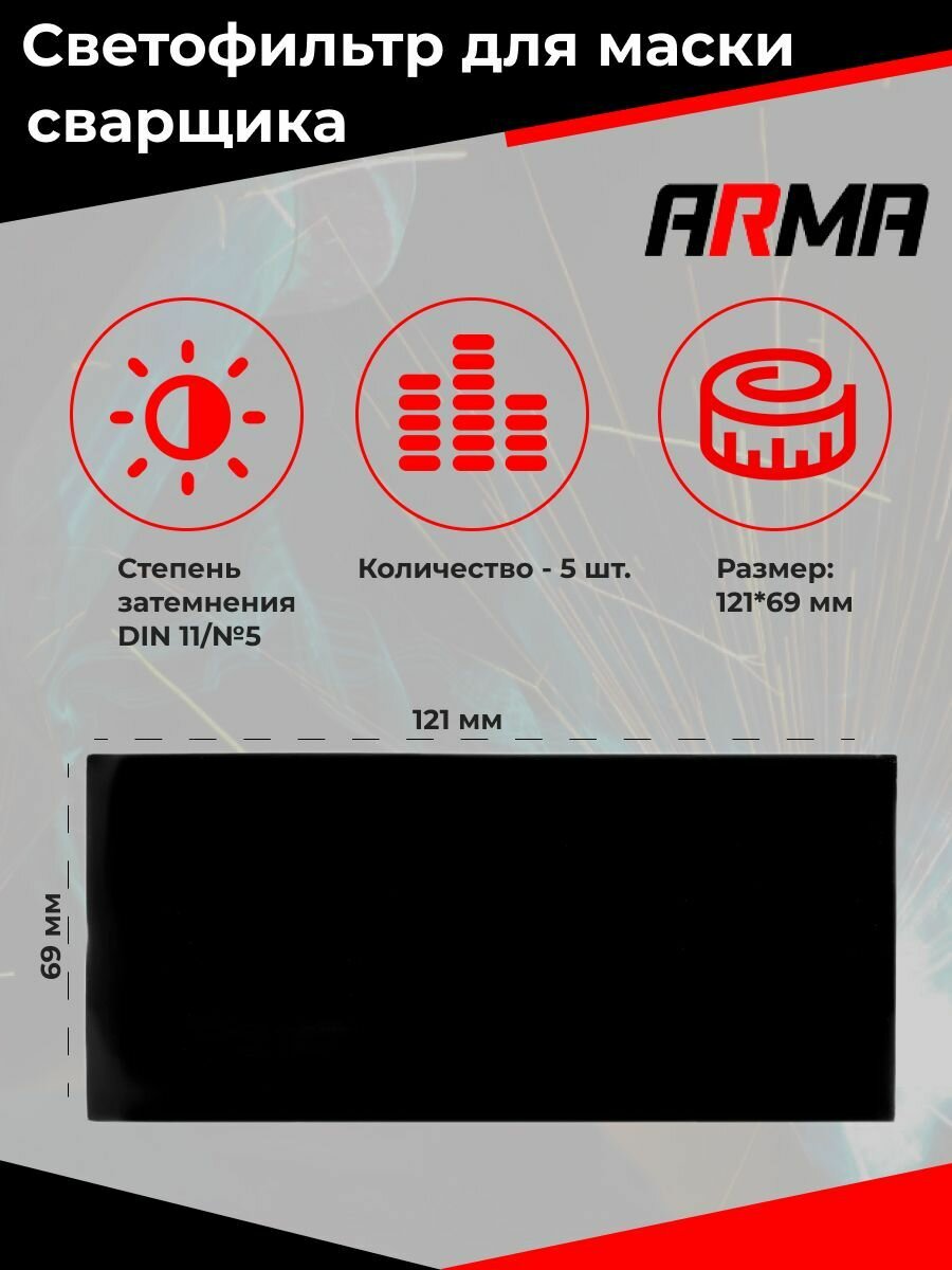 Светофильтр (стекло) для маски сварщика 121х69 #11 ARMA (5шт) интересное: