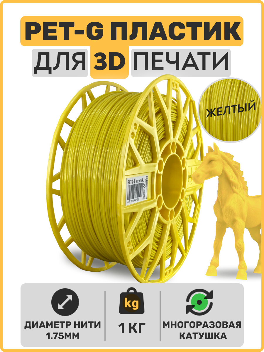 Купить Пластик для 3D принтера PETG, Желтый, 1,75мм, 1 кг.