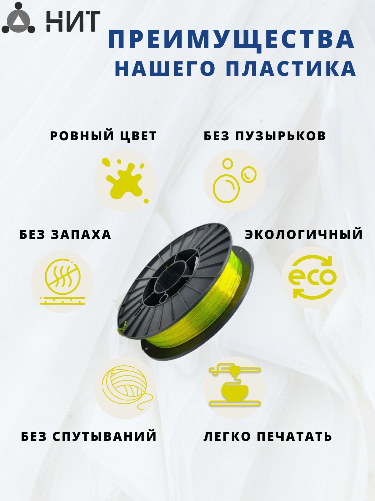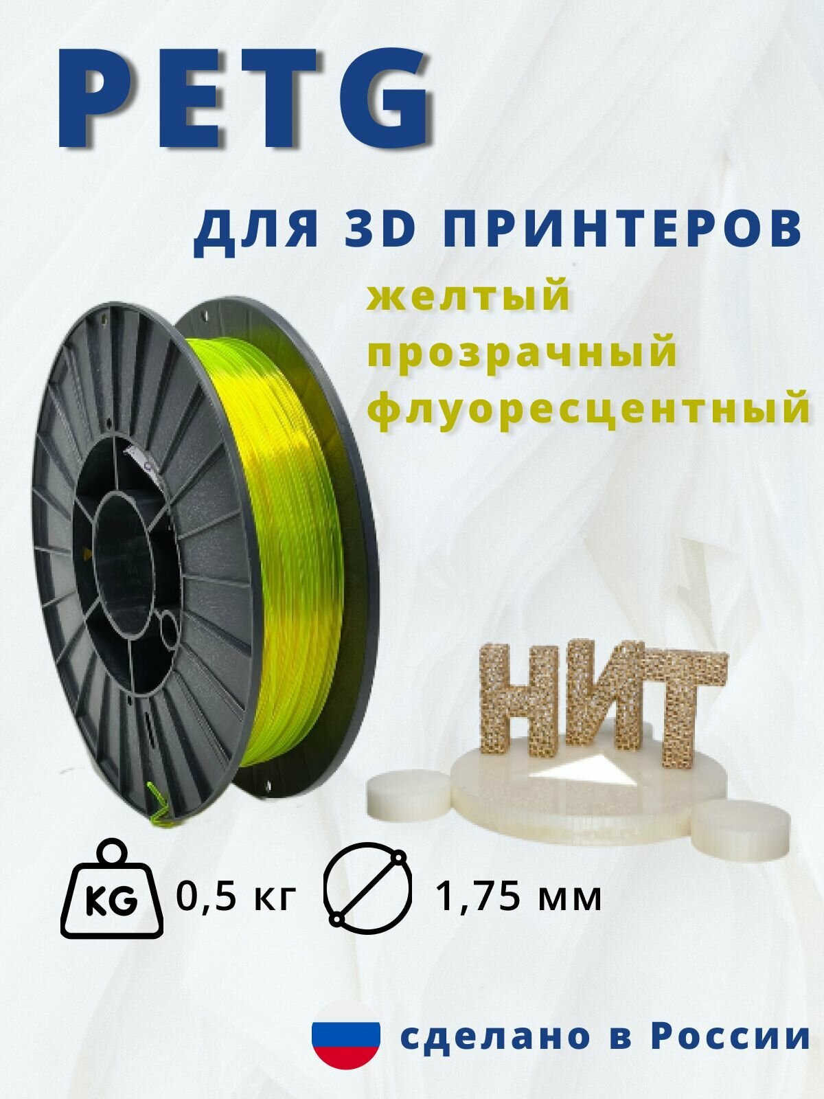 Пластик для 3д печати "НИТ", Petg желтый прозрачный флоуресцентный 0,5 кг интересное: