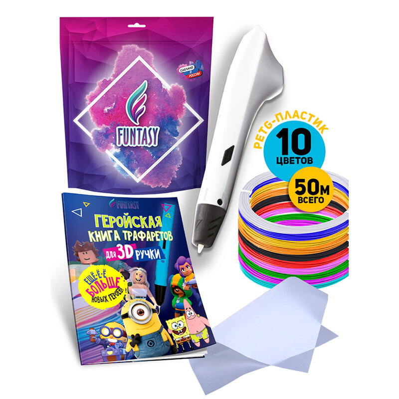 Купить Аксессуар Набор для творчества Funtasy 3D-ручка Simple + PETG пластик 10 цветов + Книжка с трафаретами HERO SET-Simple-PETG
