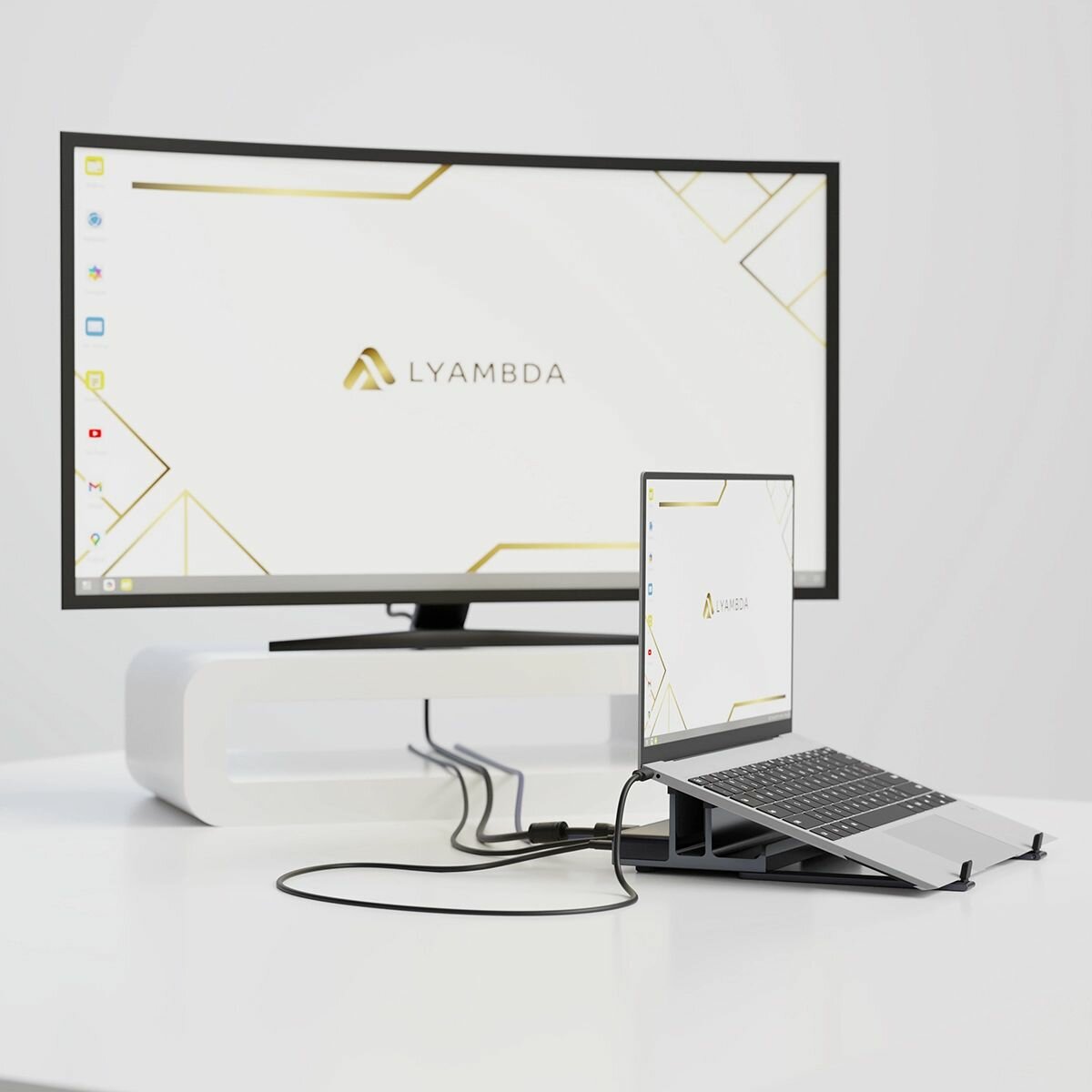 Док-станция подставка для ноутбука 6 в 1 Type-C/USB 3.0/RJ45/HDMI Lyambda Aluminum LIN-06 Gray