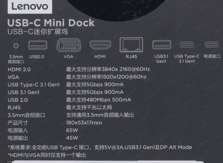 Док-станция Lenovo ThinkPad Lenovo USB-C Mini Dock 40AU0065EU/CN интересное: