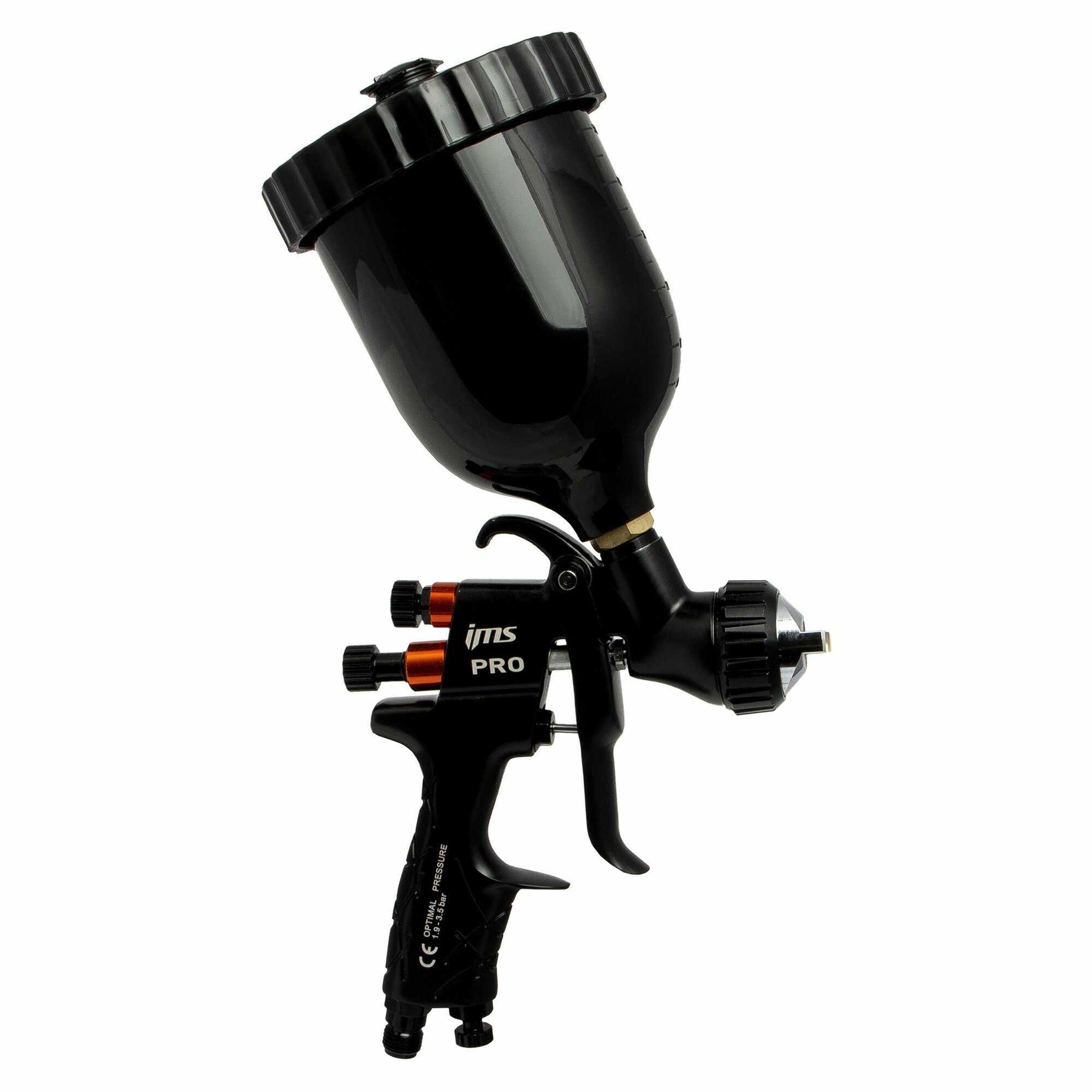 Купить Краскопульт пневматический LVMP Дюза 1.3 (профессиональный краскораспылитель) IMS Spray gun с верхним пластиковым бачком и быстросъмом для шланга.