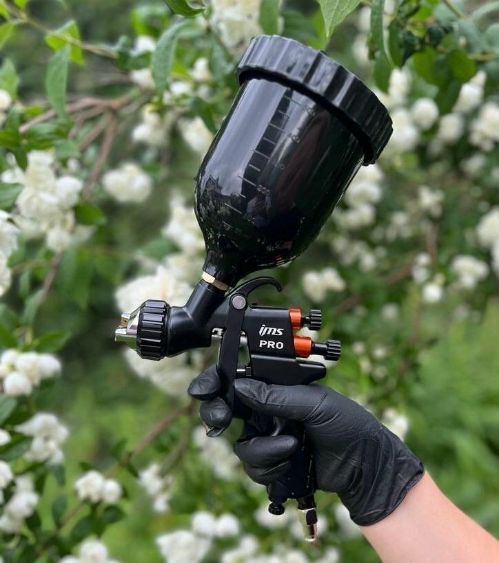Краскопульт пневматический LVMP Дюза 1.3 (профессиональный краскораспылитель) IMS Spray gun с верхним пластиковым бачком и быстросъмом для шланга. интересное: