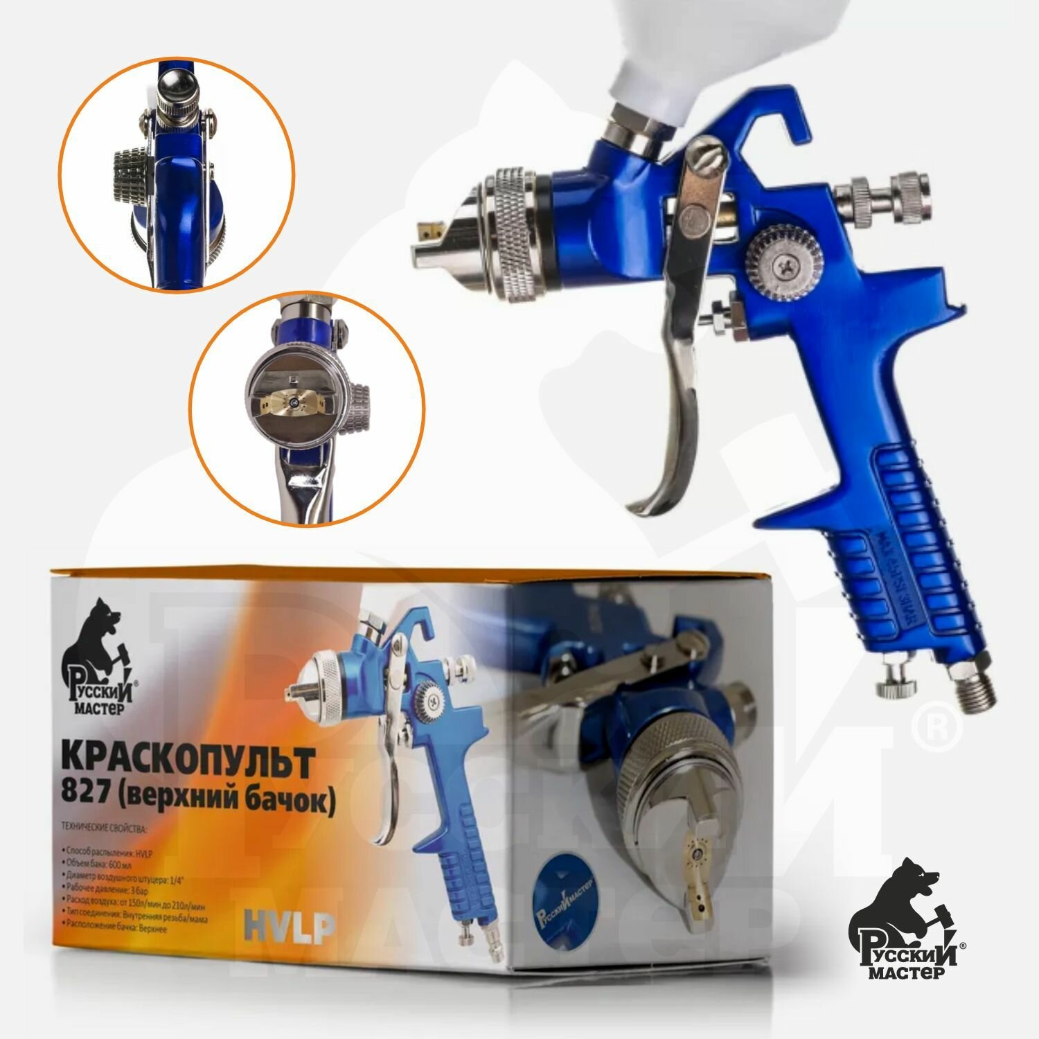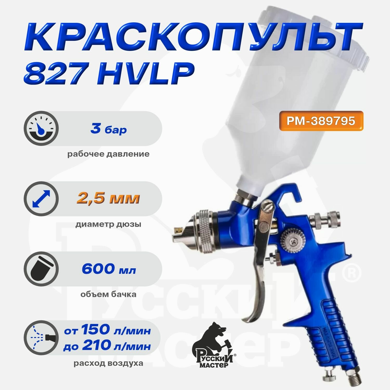 Краскопульт Русский Мастер 827 (2,5мм) для раптора HVLP, верхний бачок РМ-389795