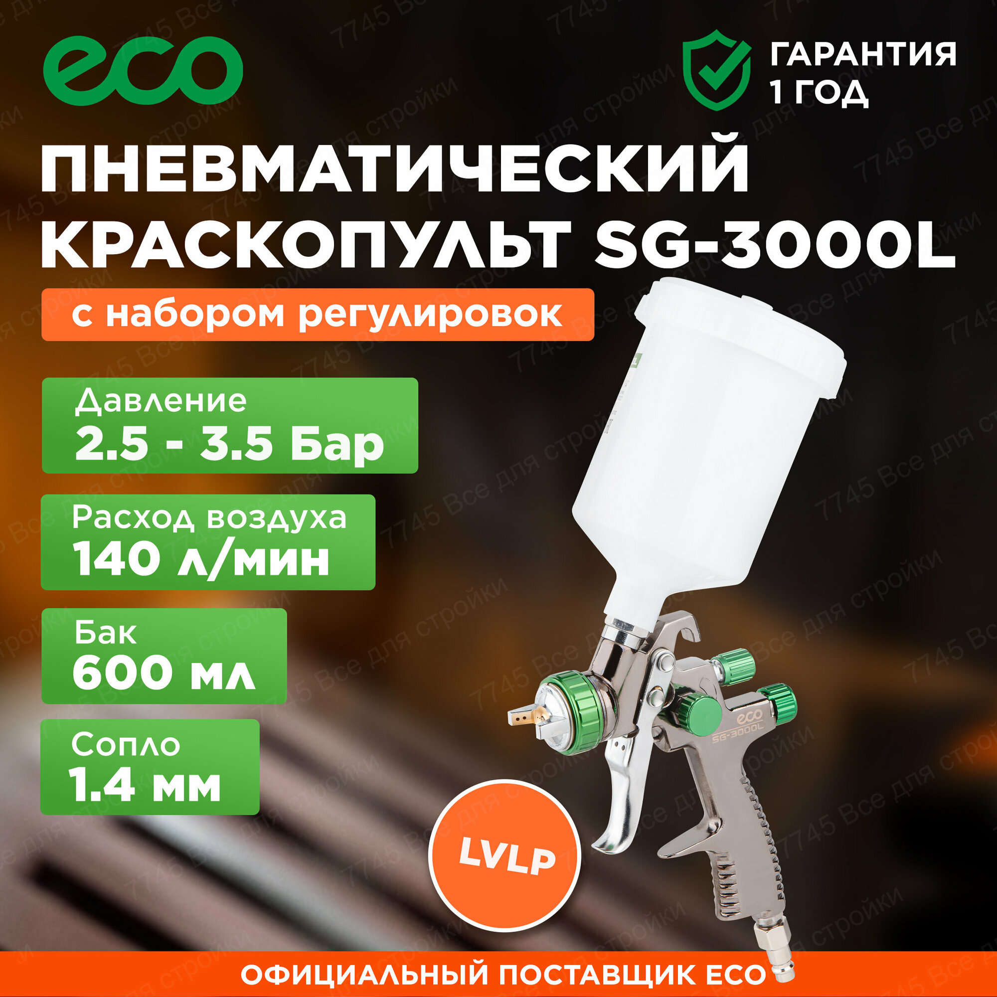 ECO EC153214 EC1532-14 Краскораспылитель ECO SG-3000L (сопло ф 1.4 мм) (LVLP, сопло ф 1.4 мм, верх. бак 600 мл) интересное: