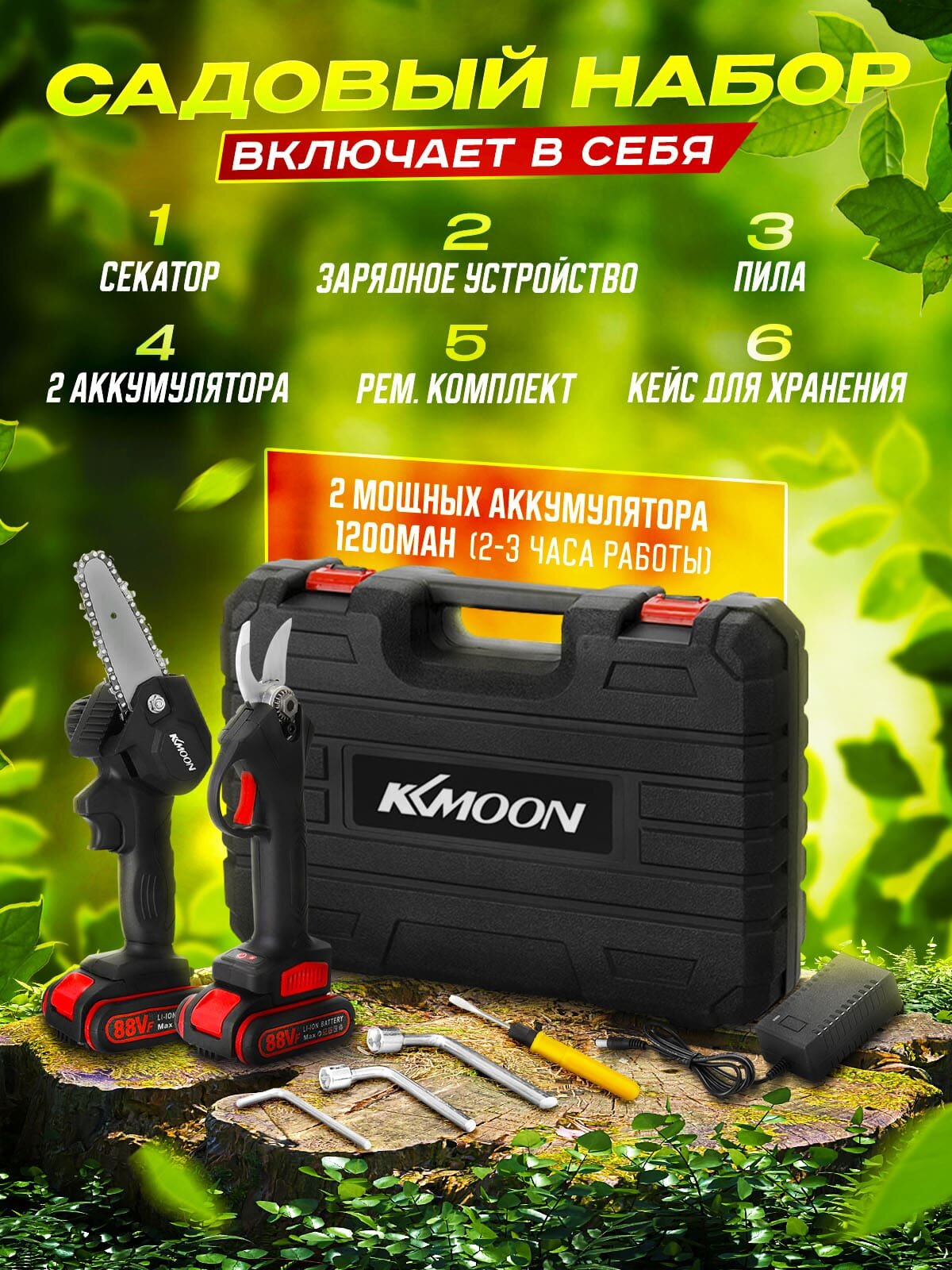 Секатор пила садовый аккумуляторный для дачи огорода дома/ набор инструментов для дачи