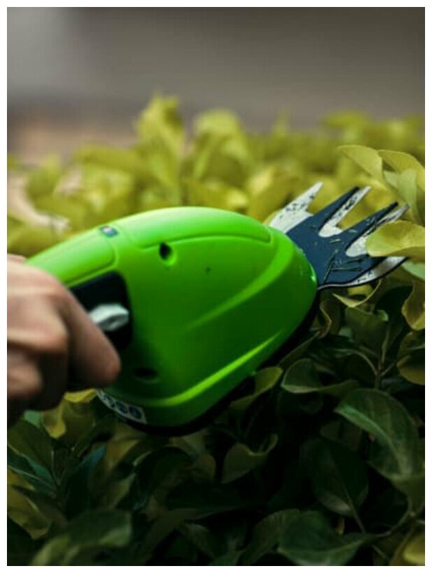 | Комплектация | Ножницы аккумуляторные GreenWorks, 7.2V; Лезвие для травы с чехлом; Лезвие - кусторез с чехлом; Зарядное устройство; Руководство по эксплуатации; Гарантийный талон |