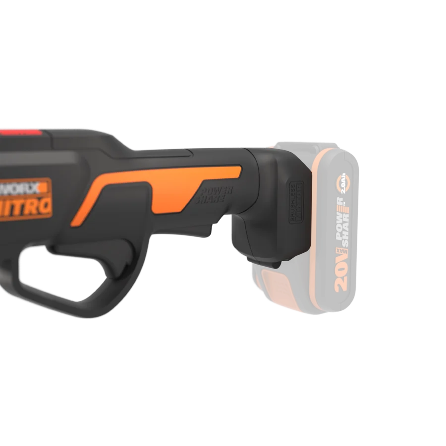 Аккумуляторный секатор с бесщеточным мотором Worx Nitro WG330E.9, 20 В, диаметр cреза 25 мм, без АКБ и ЗУ