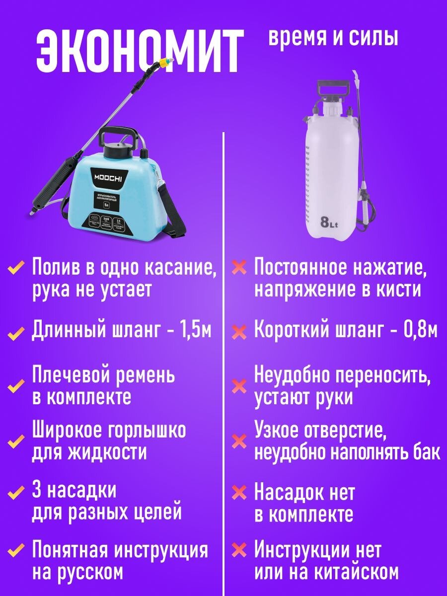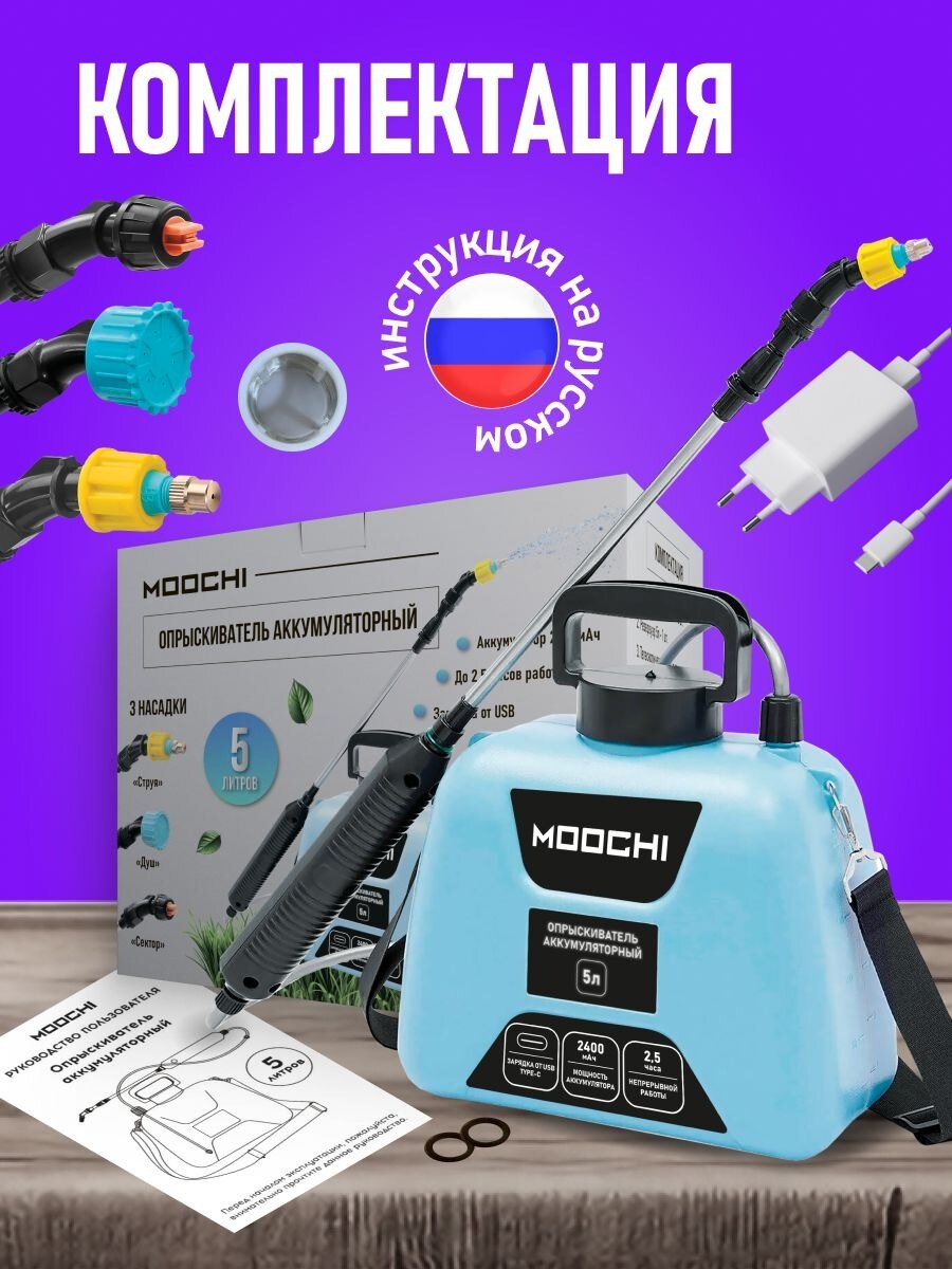 Опрыскиватель MOOCHI, садовый, плечевой, 5 л, Li-ion аккумулятор, 2.4 Ач