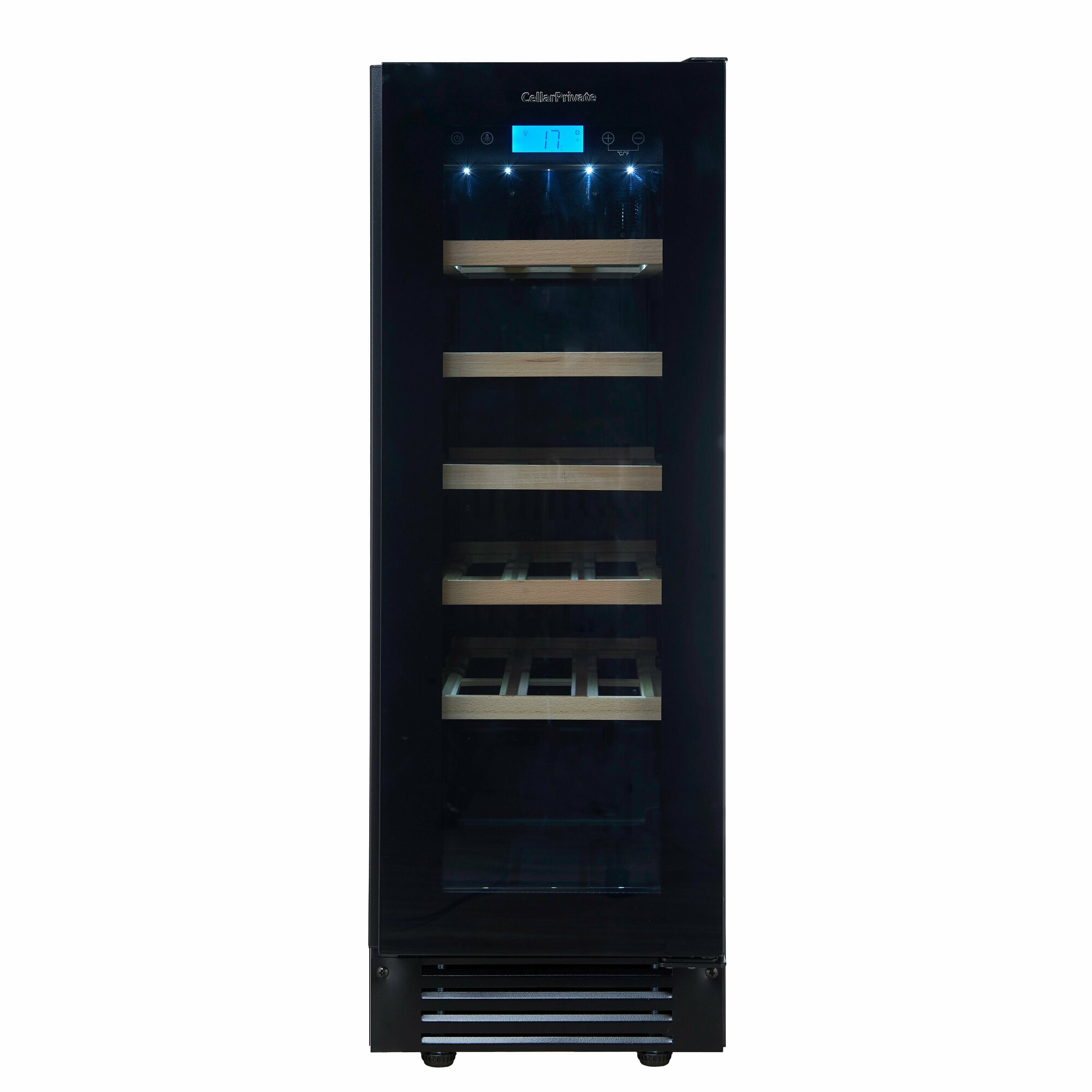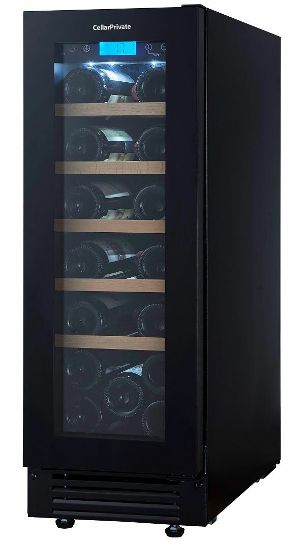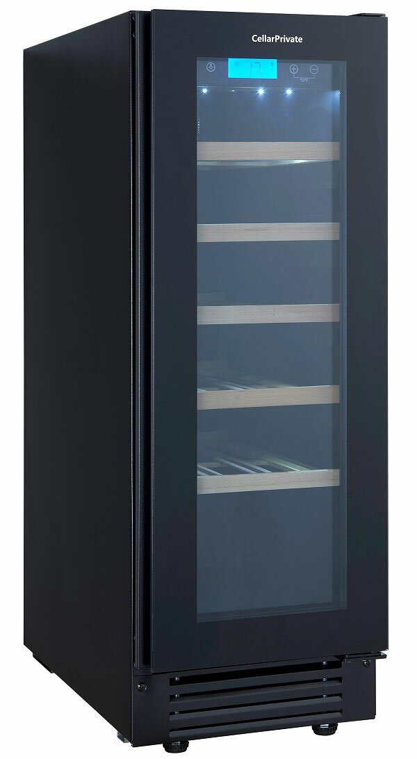Винный шкаф Cellar Private CP020-1TBH, встраиваемый, однотемпературный, скрытая ручка, 20бут, черный.
