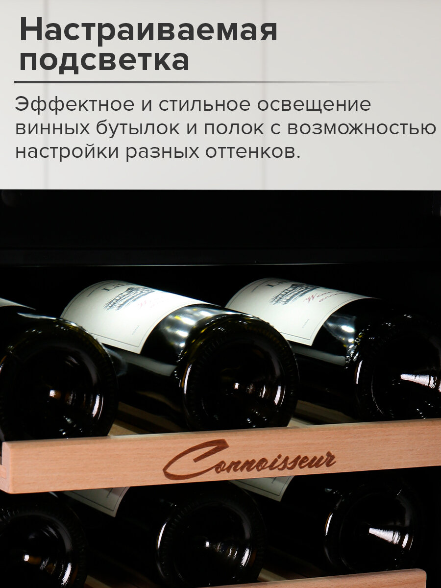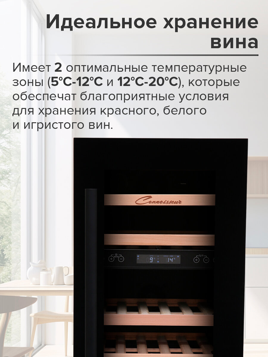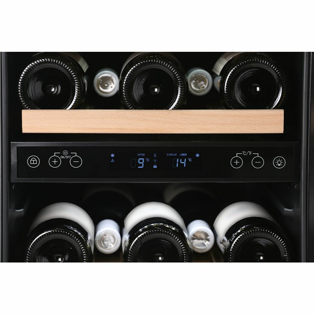 Ровный Подсветка Две раздельные зоны для игристого и не игристого вин Нормальная сенсорная панель |