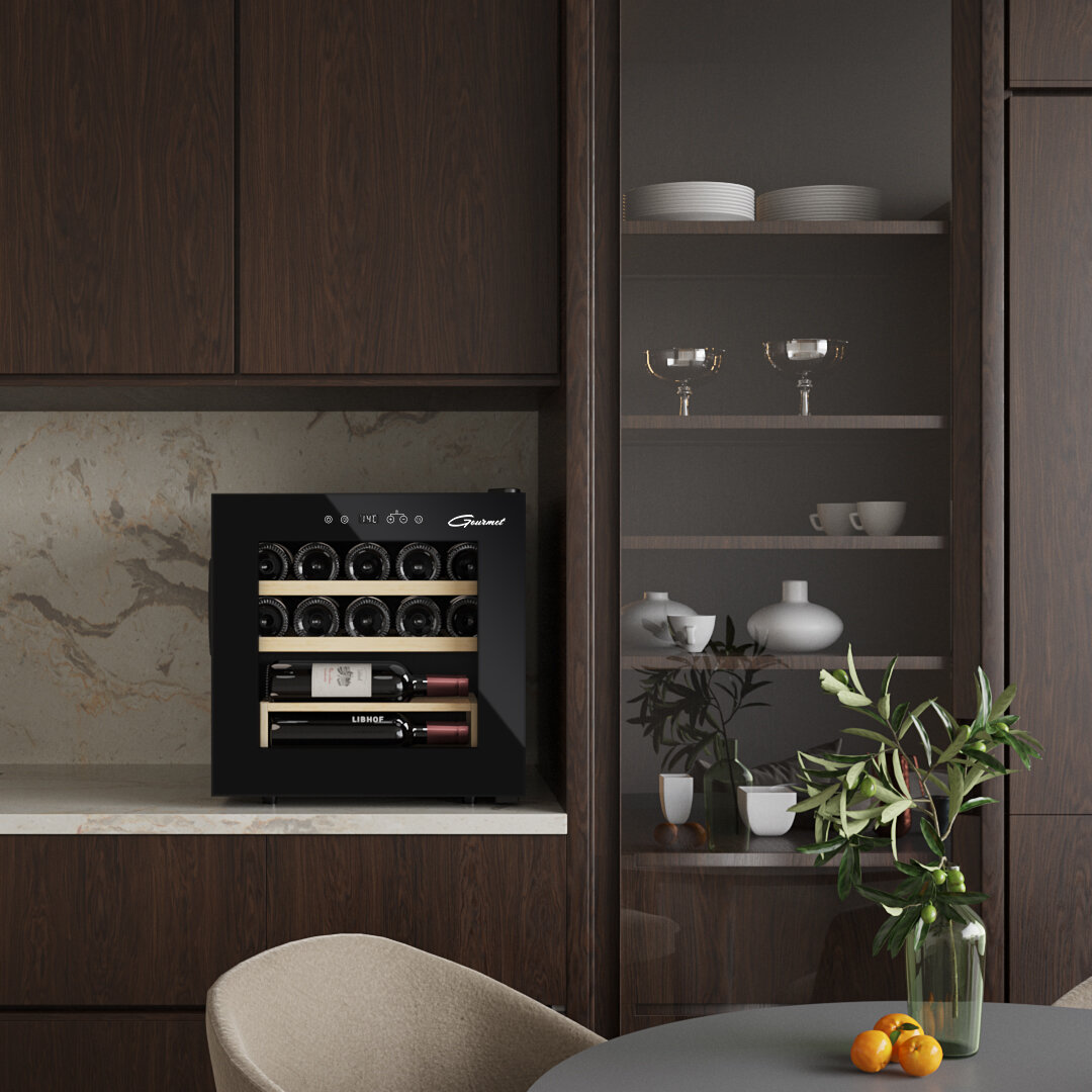 | Отзыв: | Компактный, довольно простой в управлении винный шкаф рассчитанный на 14 бутылок вина. Внешне смотрится очень стильно и идеально вписался в наш интерьер. Мы его совсем недавно приобрели, но пользуемся теперь постоянно. Он оснащен двумя полками и одной корзиной для хранения и охлаждения вин. Температура распределяется при помощи сенсорного табло. Очень удобно |
