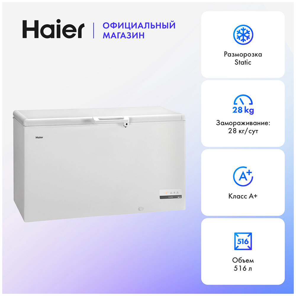 Морозильный ларь HAIER HCE520RFC на колесах с глухой крышкой, с подсветкой 517л, морозильник, белый