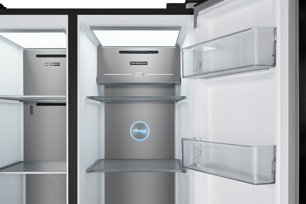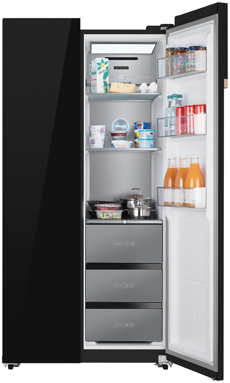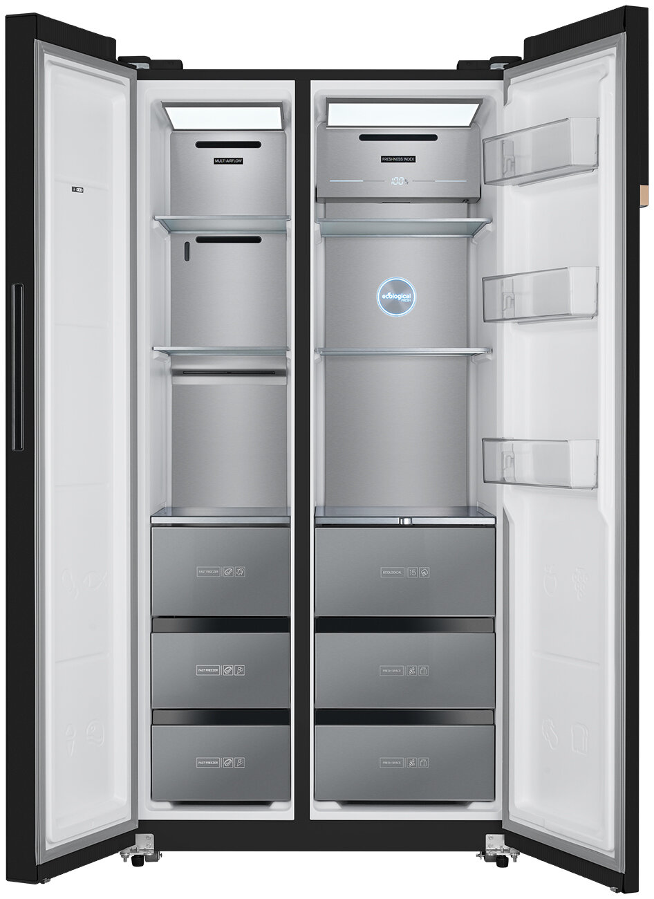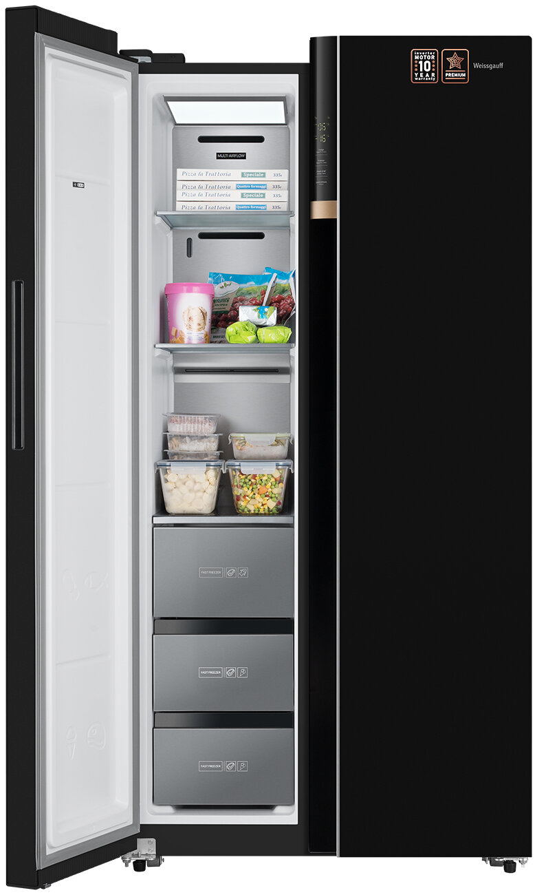 Купить Холодильник Weissgauff WSBS 590 BG NoFrost Inverter Premium, черное закаленное стекло