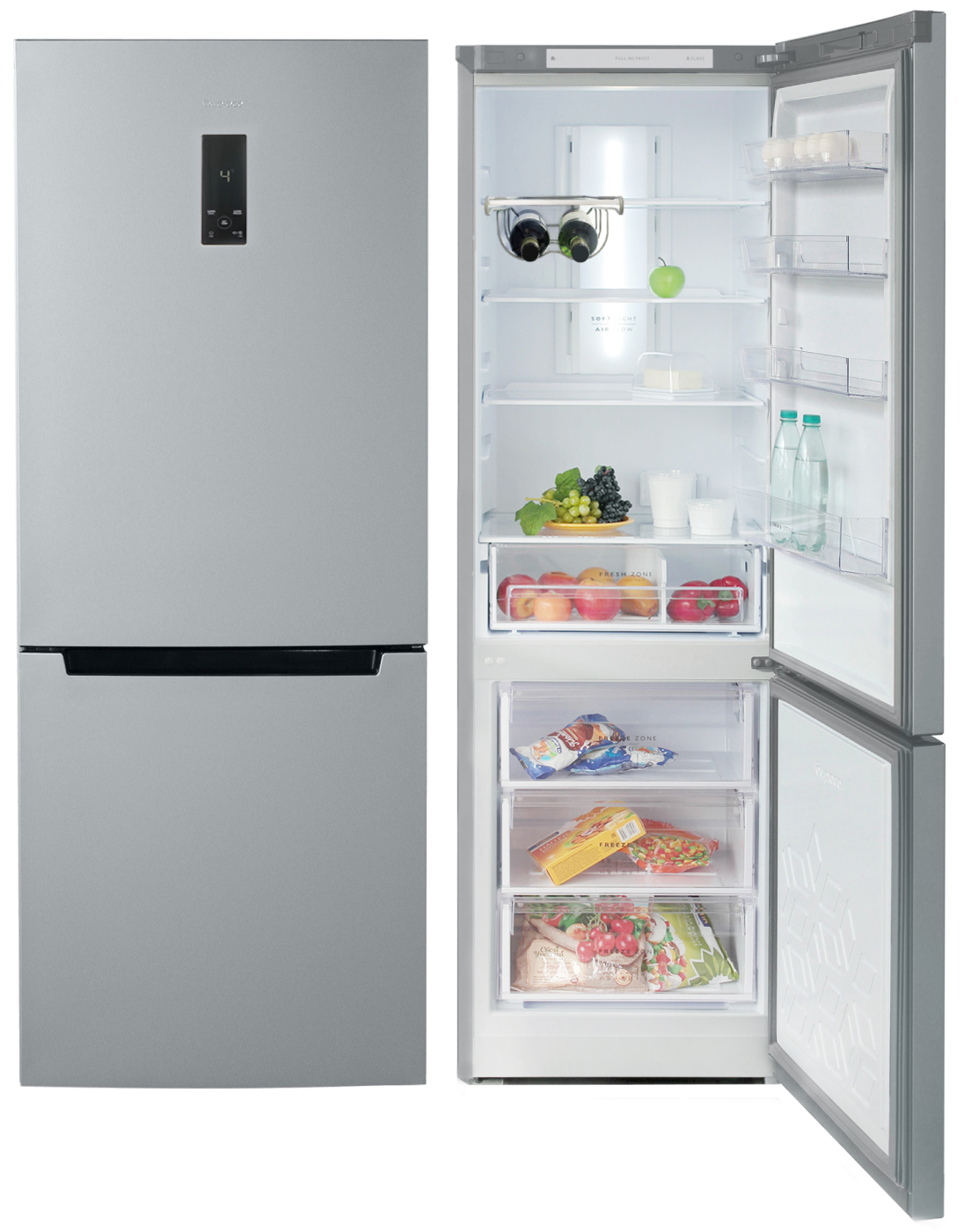 | Дополнительные функции | Система контроля влажности / Full No Frost / Автоматический доводчик двери / Дисплей / Светодиодная подсветка / Скрытые ручки |