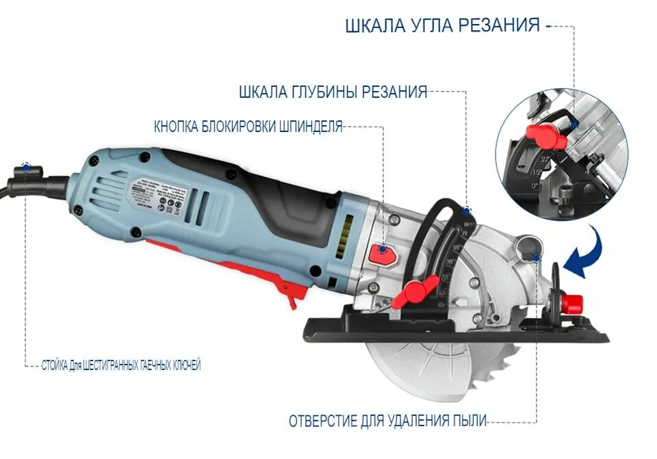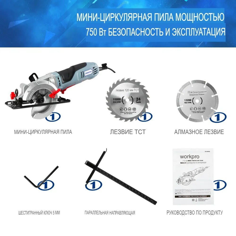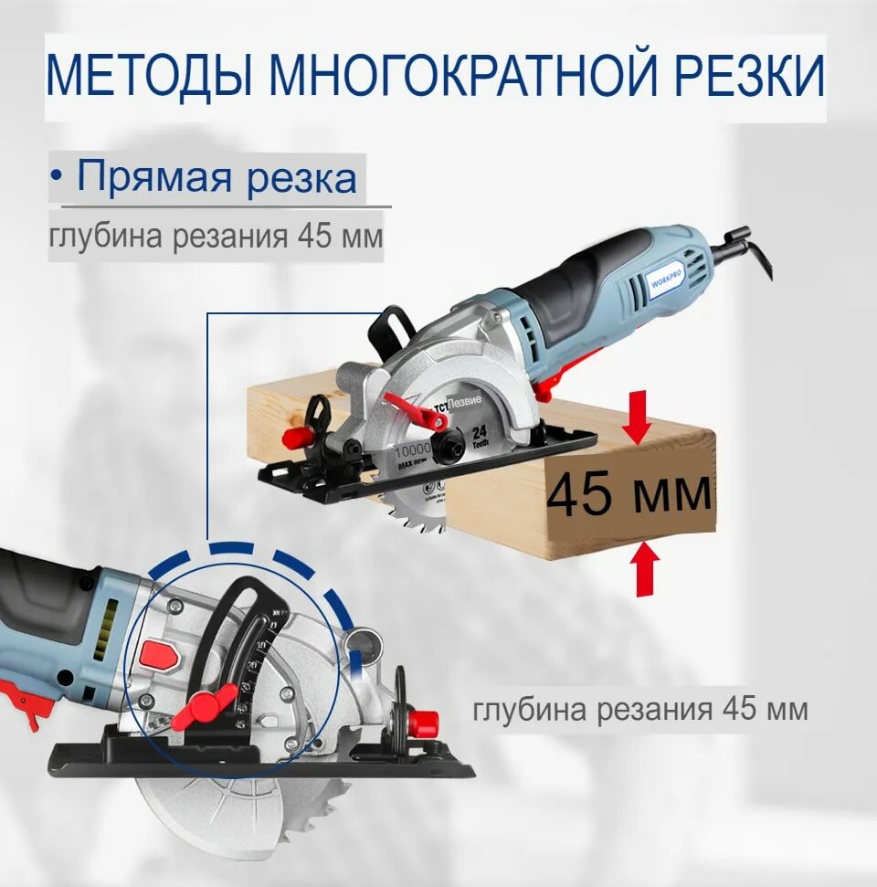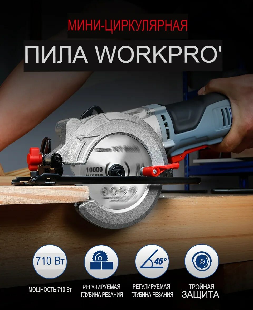 Электрическая мини-циркулярная пила WORKPRO 750 Вт интересное: