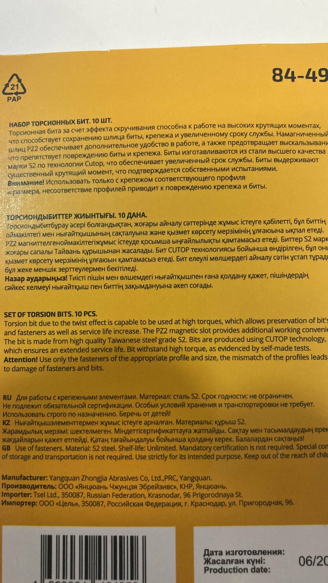 Набор бит Cutop PROFI PLUS торсионных (50 mm,PZ2) 10 шт 84-495 интересное:
