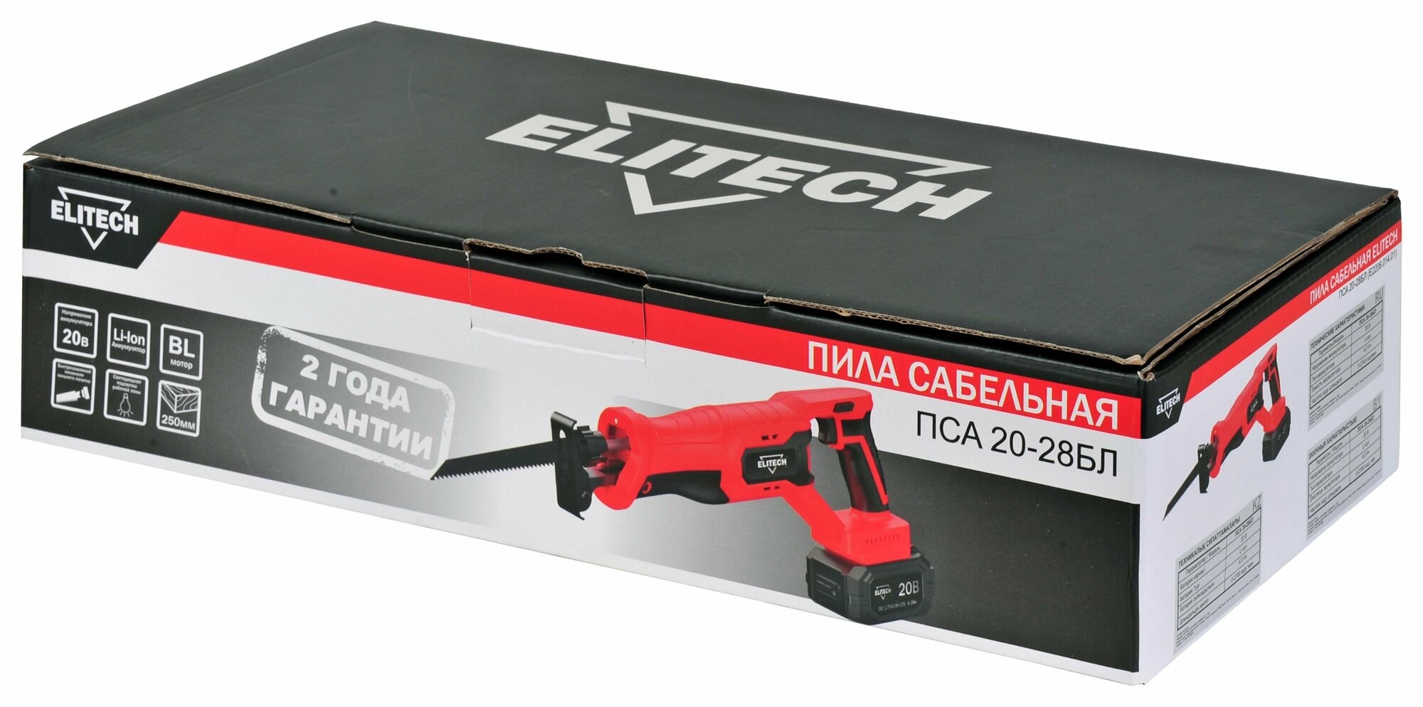Пила сабельная аккумуляторная Elitech ПСА20-28БЛ, 20 В Li-Ion 1x4 Ач интересное: