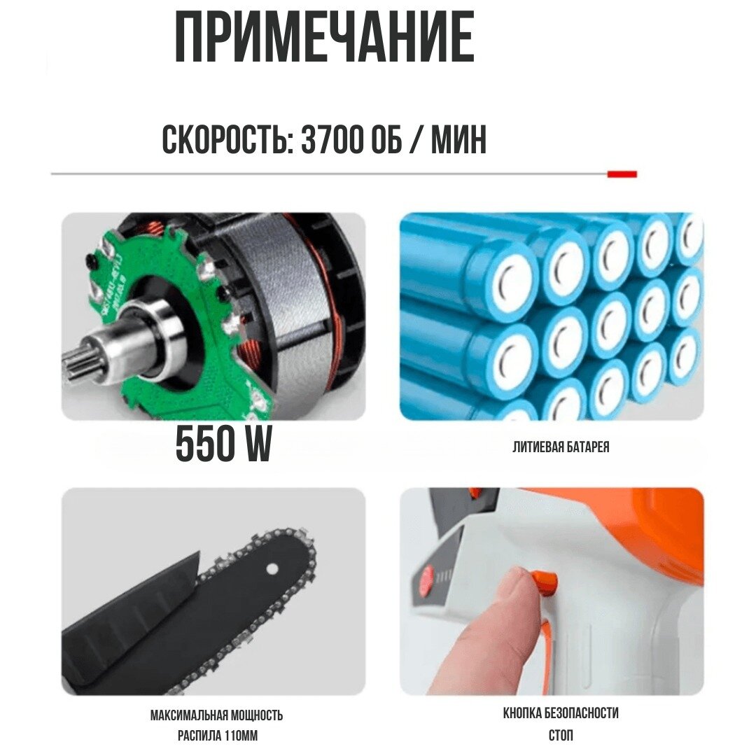 Мини электропила аккумуляторная / Электропила цепная / Ручная мини электропила / 550 W интересное: