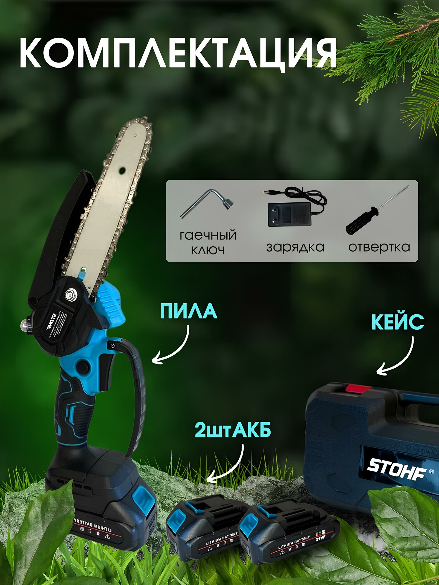 ставлю пока авансом 4 звезды,потому что работает, два акб, и пришло на пару суток быстрее заявленного, одну звезду снял за то что кейс не родной ,подобрали по размеру примерно - и суют/рассылают, на одном фото показал отвёрткой вмятину в кейсе, т.к. не по размеру, это хорошо что кейс мягкий, а то бы маслёнку на пиле сломало бы, да и ниши под акб видно что под большие, а не такие тонюсенькие ,..брал две штуки - себе и своей знакомой, посмотрим, выскочат какие то косяки у меня или у неё или нет, если что - дополню, если не будет неисправностей ,то за эти деньги купить можно для небольших работ, на силу бензопилы не рассчитывайте, конечно же..