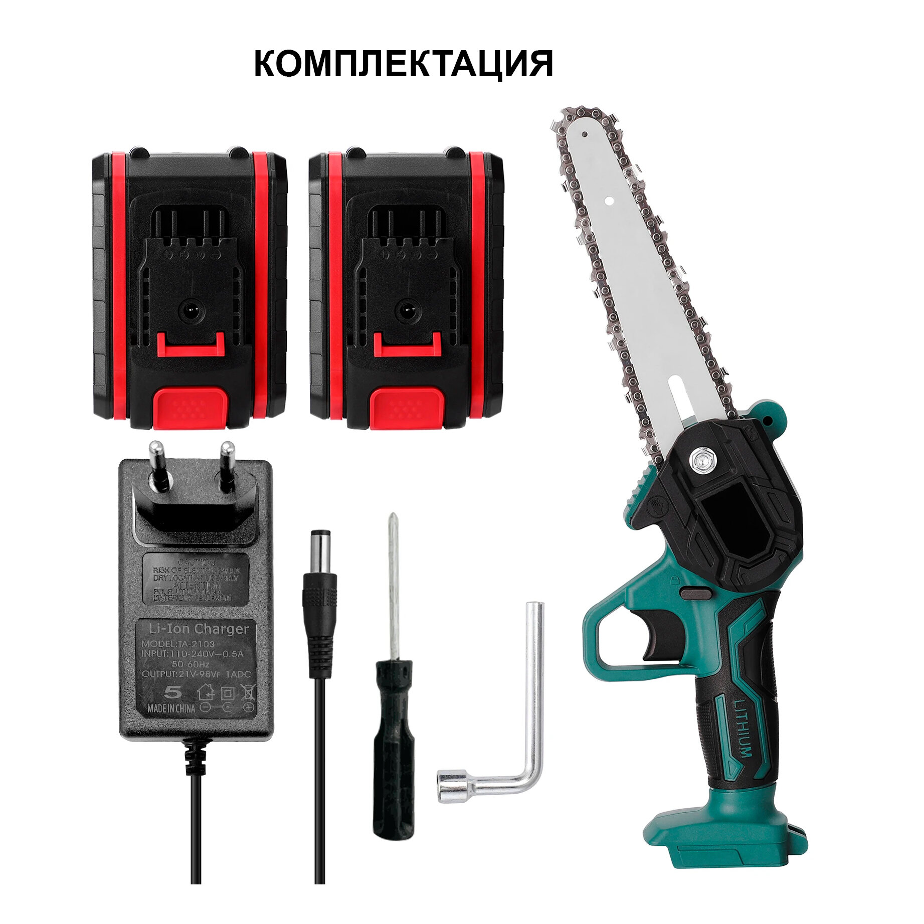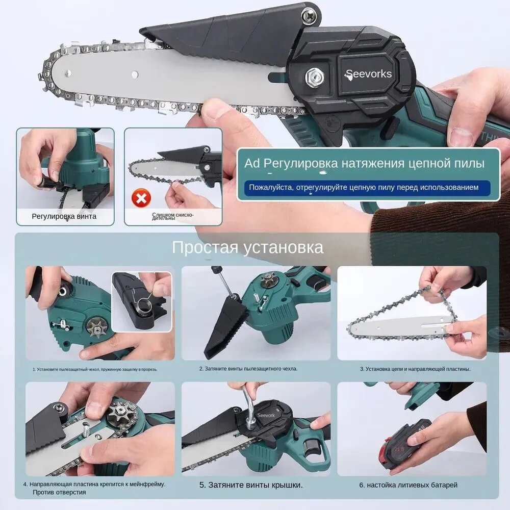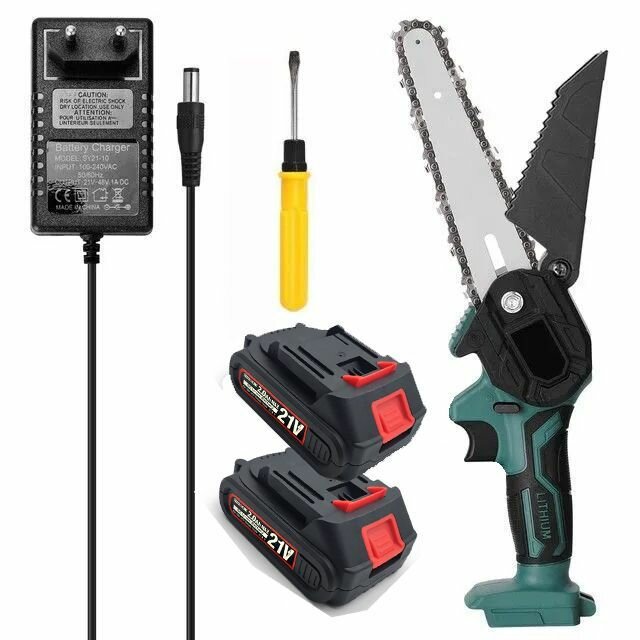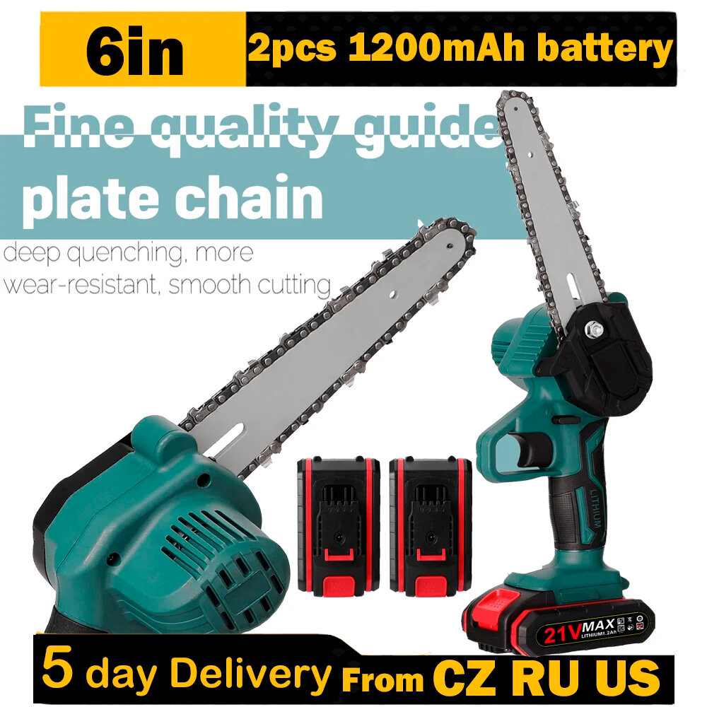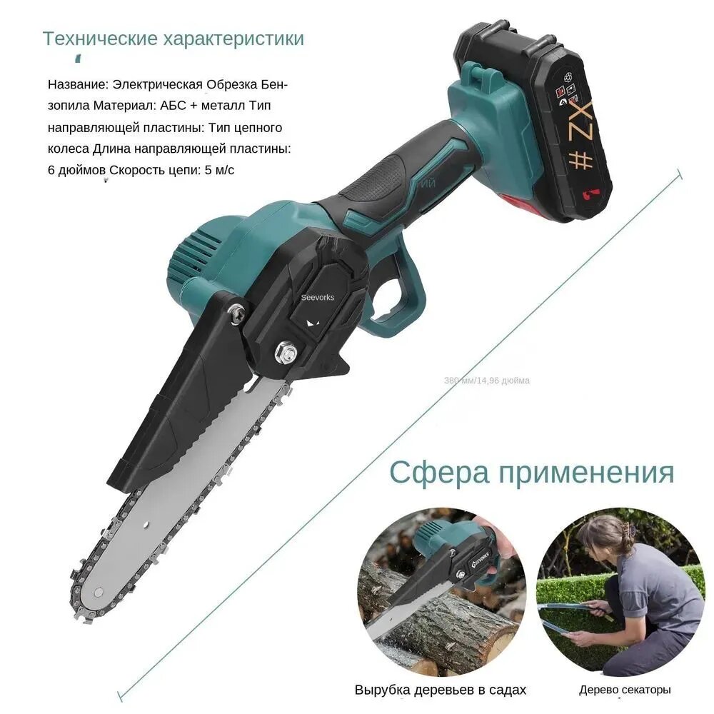 Купить Садовая электропила, 6 дюймов, с двумя аккумуляторами, стандарт викс + запасная цепь в подарок