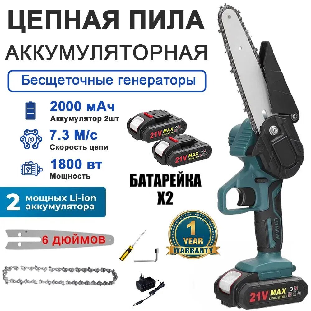 Садовая электропила, 6 дюймов, с двумя аккумуляторами, стандарт викс + запасная цепь в подарок интересное: