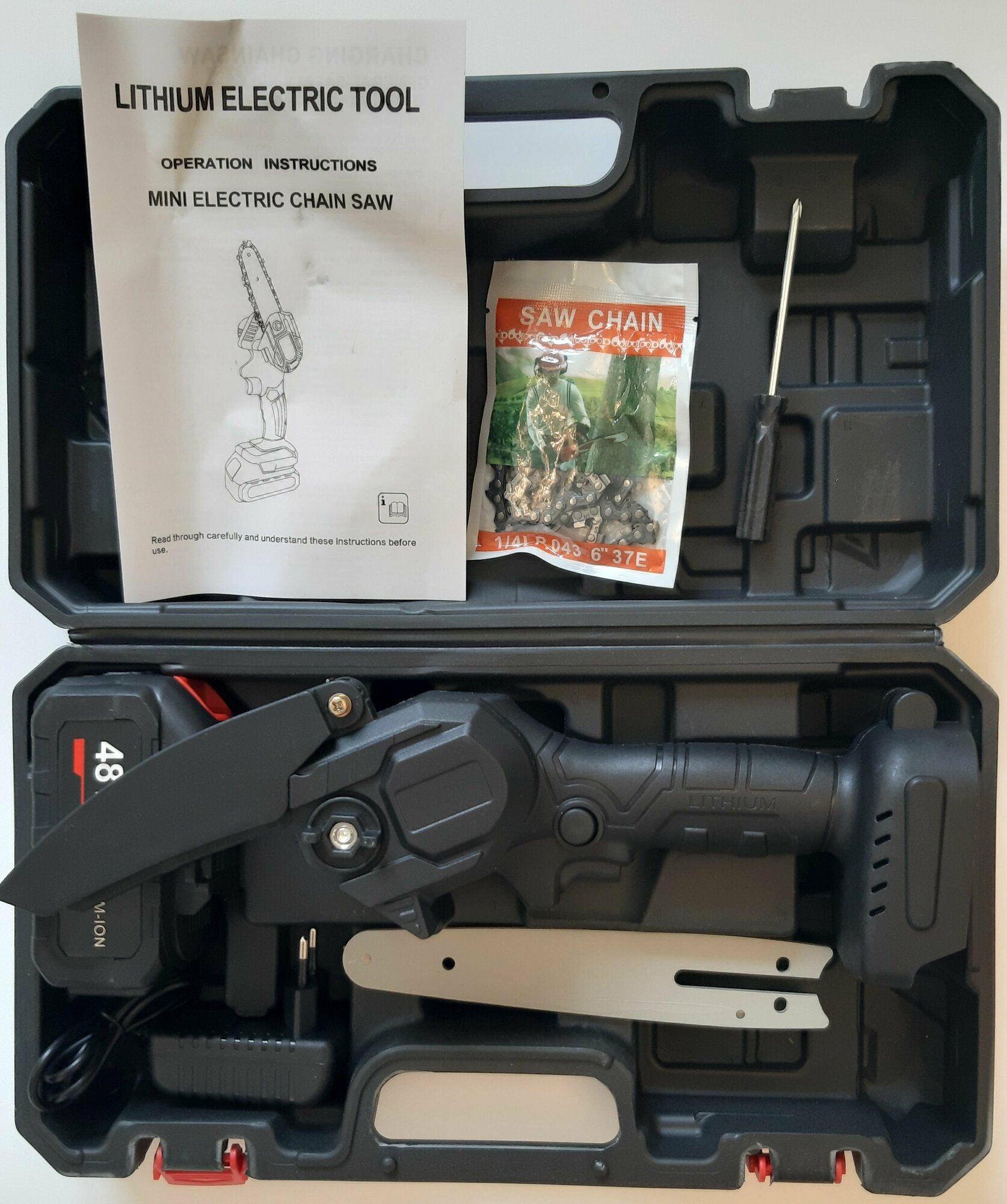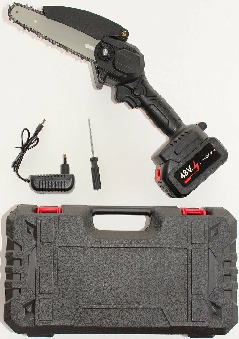 | Комплект поставки | Мини-пила 1 шт, Шина 6", цепь 6", Зарядное устройство 1 шт, Литиевая батарея 1 шт, Кейс 1 шт. |