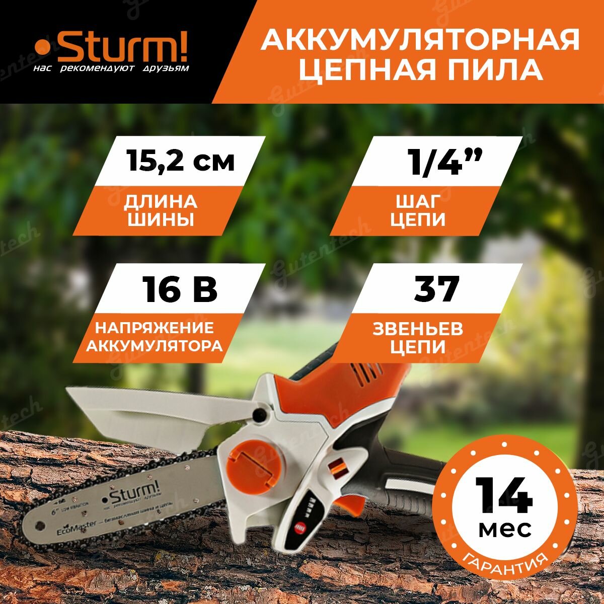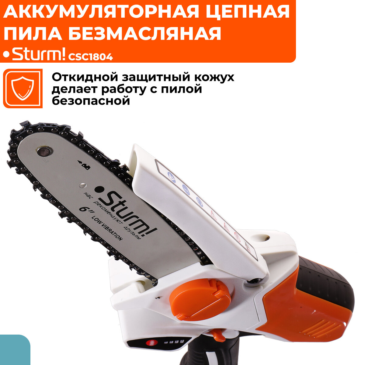 СохранитьАккумуляторная цепная пила Sturm CSC1804 интересное: