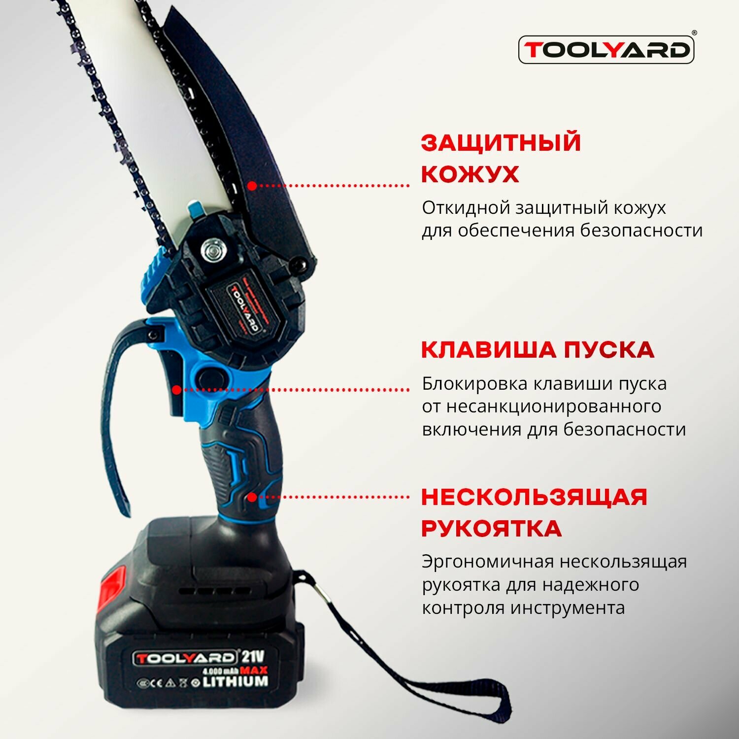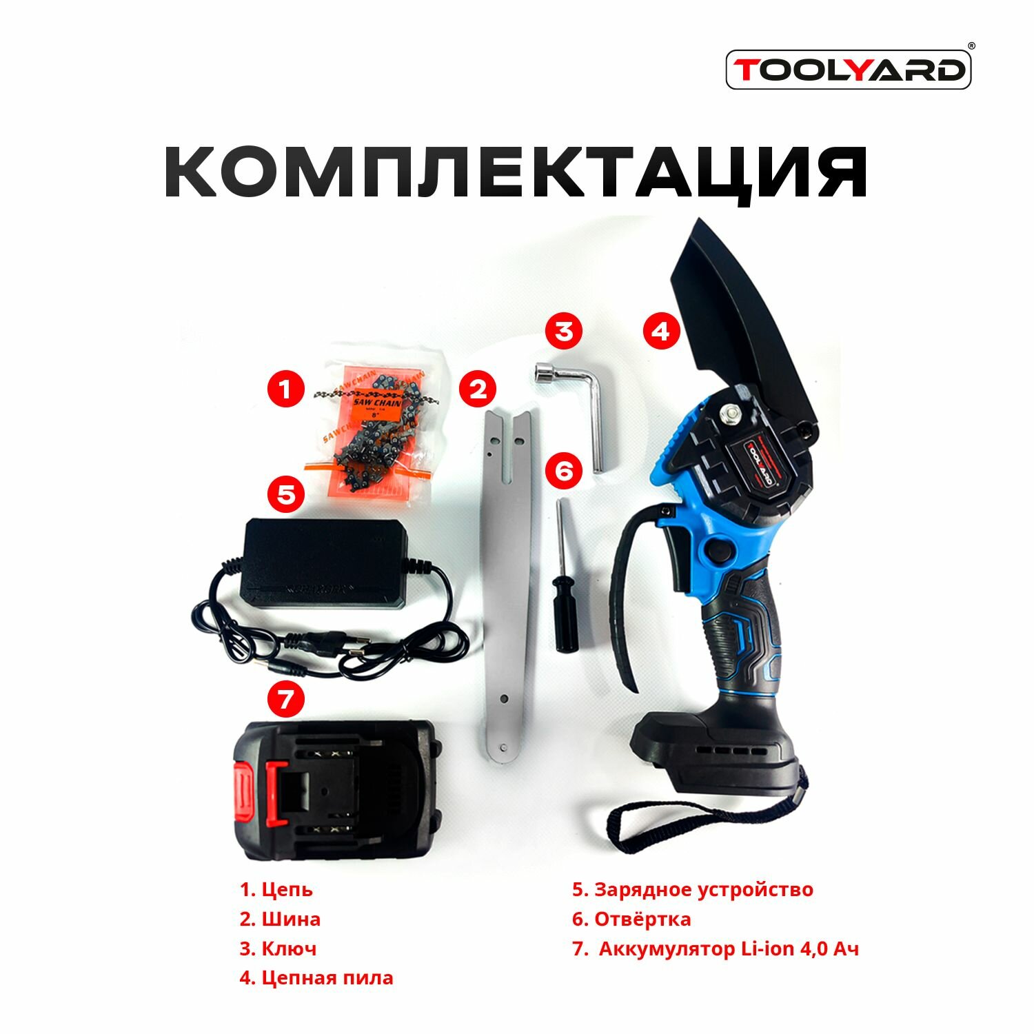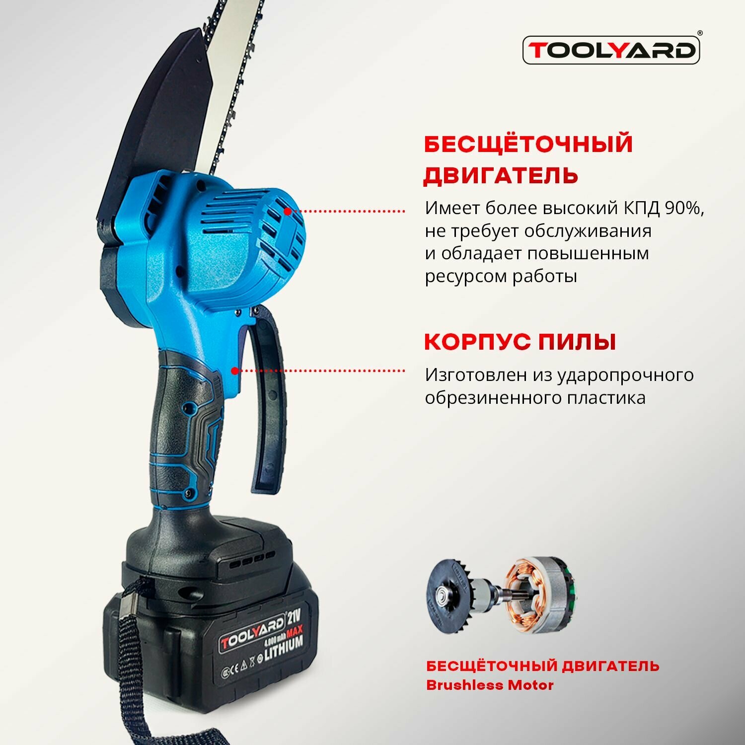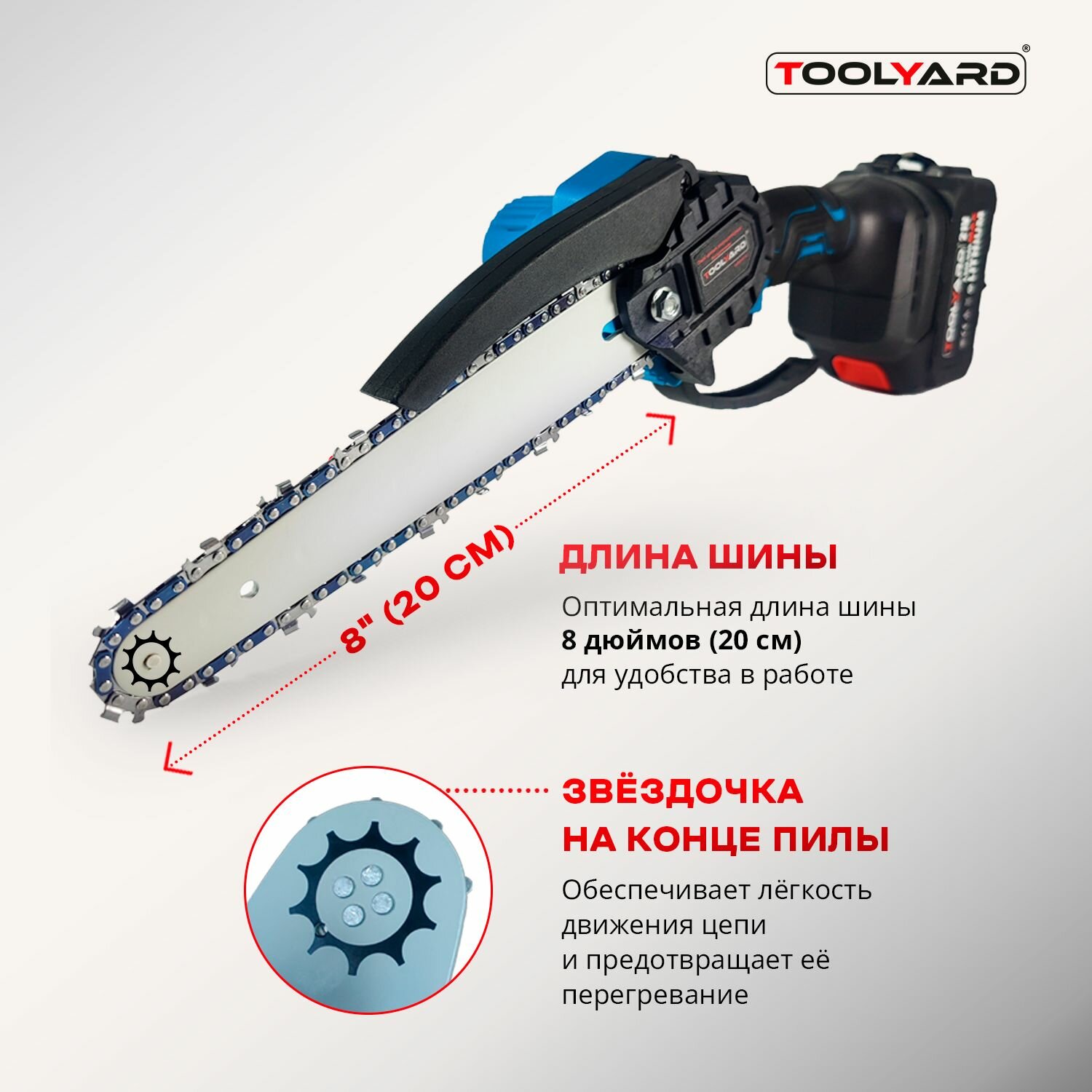 Аккумуляторная бесщеточная цепная пила TOOLYARD, 21V, 8 дюймов, акб-4.0Ач, кейс интересное: