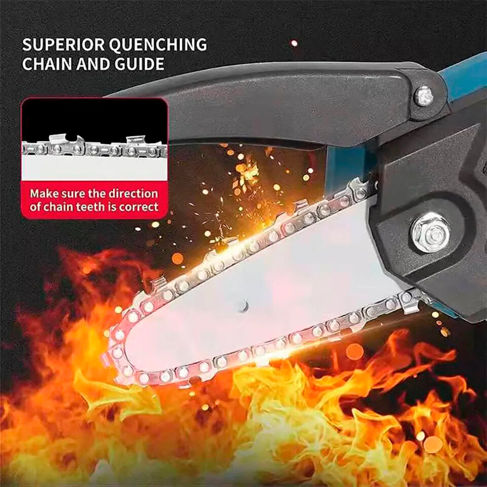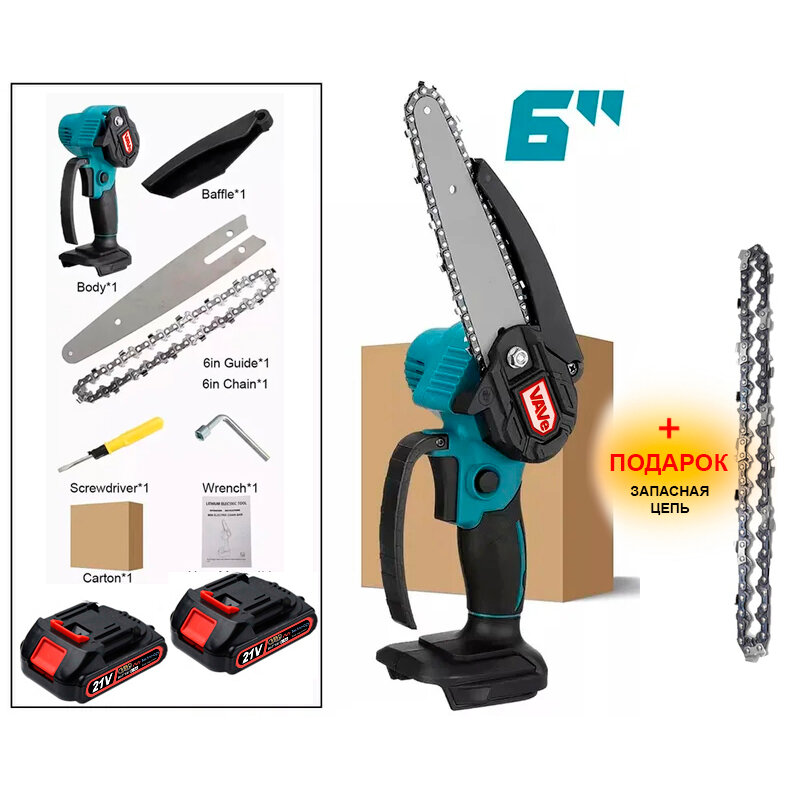 Аккумуляторная Садовая электропила 6 дюймов, стандарт макита, с 2 аккумуляторами по 2Ah + запасная цепь в подарок интересное: