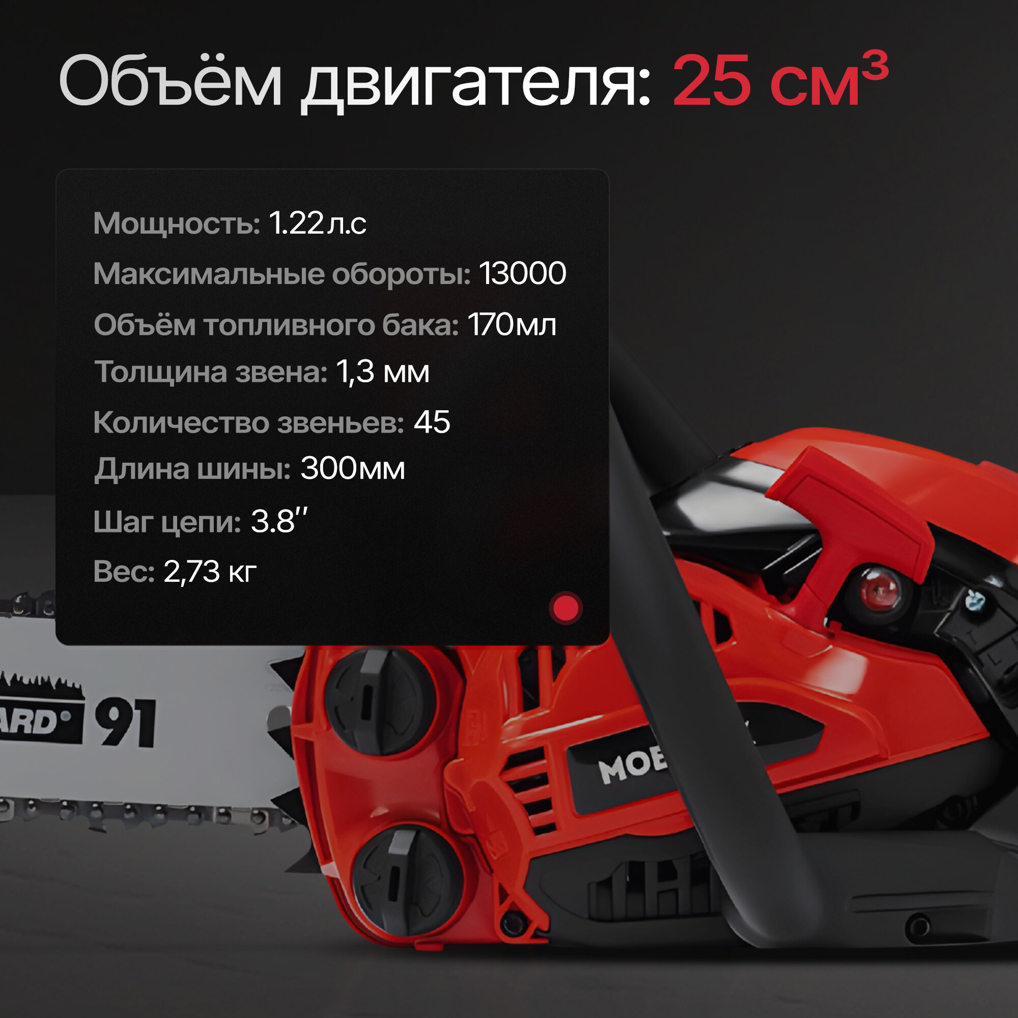 | Объем двигателя | 25 см³ |