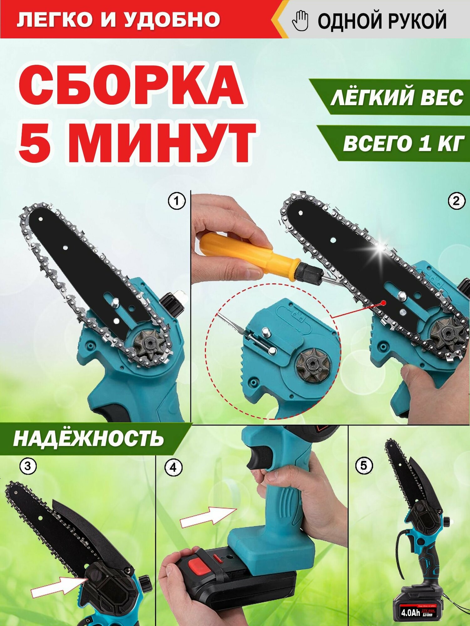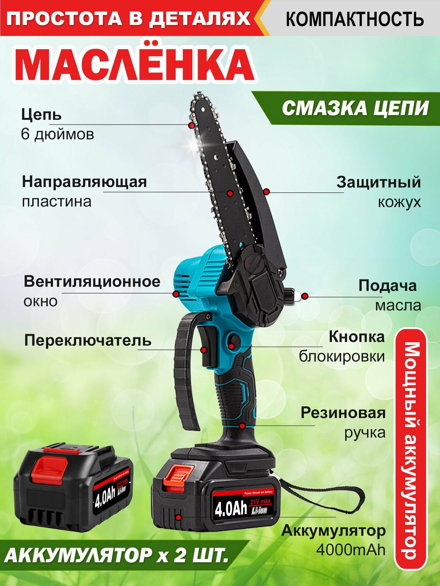 Пила цепная аккумуляторная 6 дюймов с подачей масла Violework интересное: