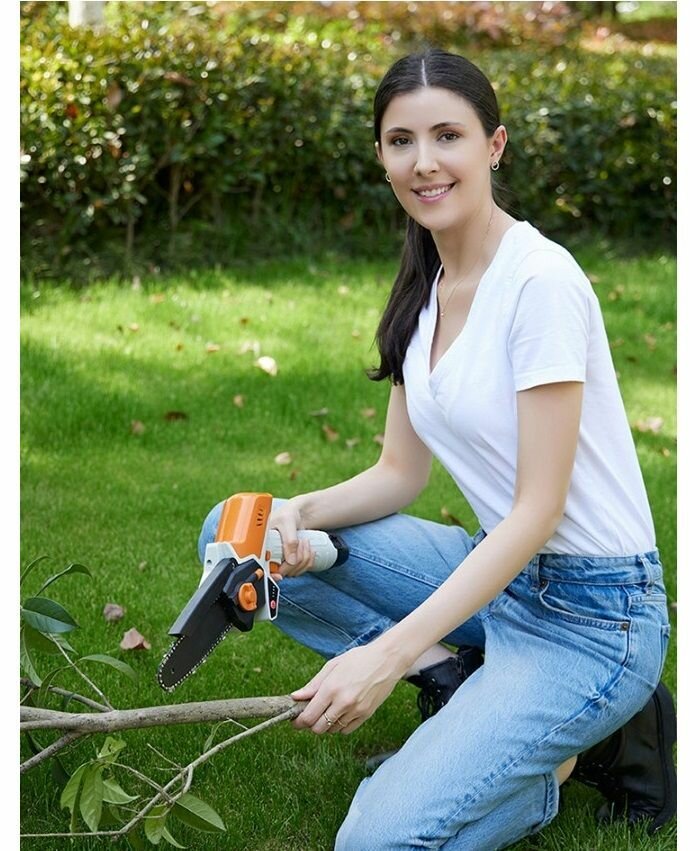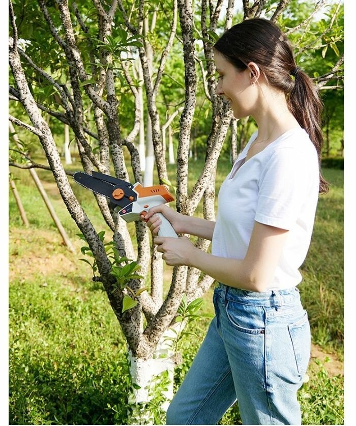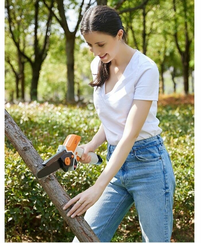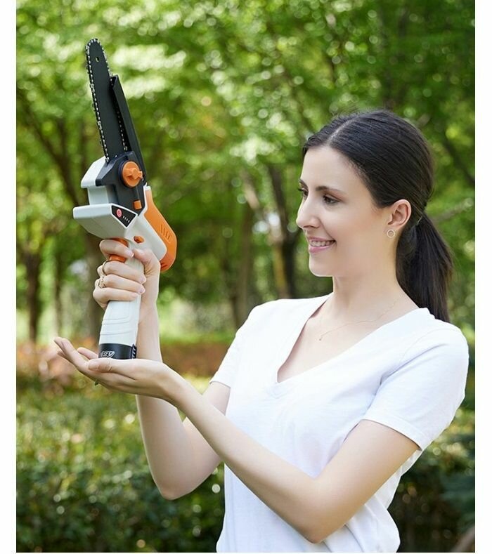 Купить Электропила цепная аккумуляторная беспроводная / Ручная мини садовая электрическая пила для дачи